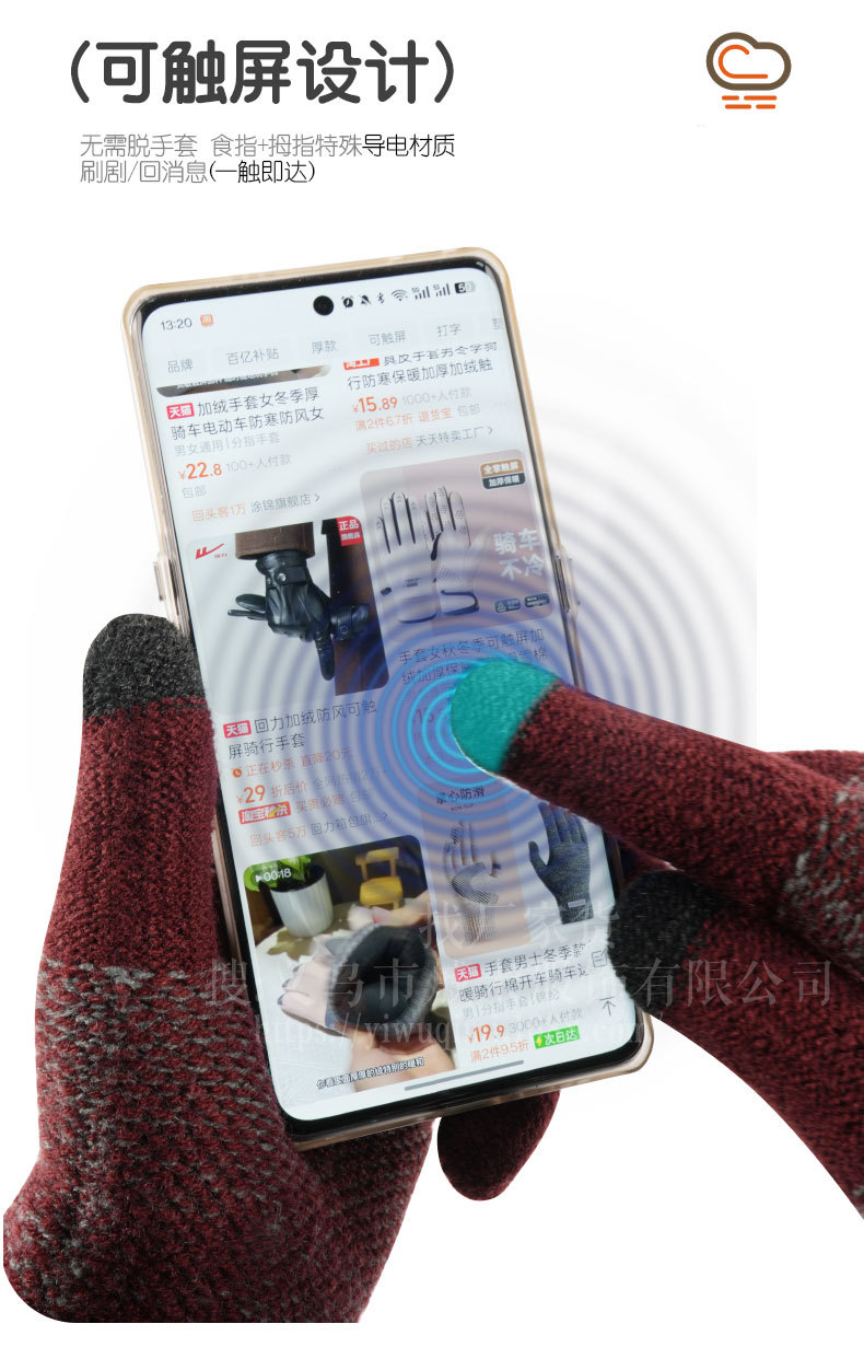 欧米のアマゾンの越境現物の秋冬手袋の男女の保温は厚い二重のタッチパネルの屋外の自転車の手袋を持ちます。