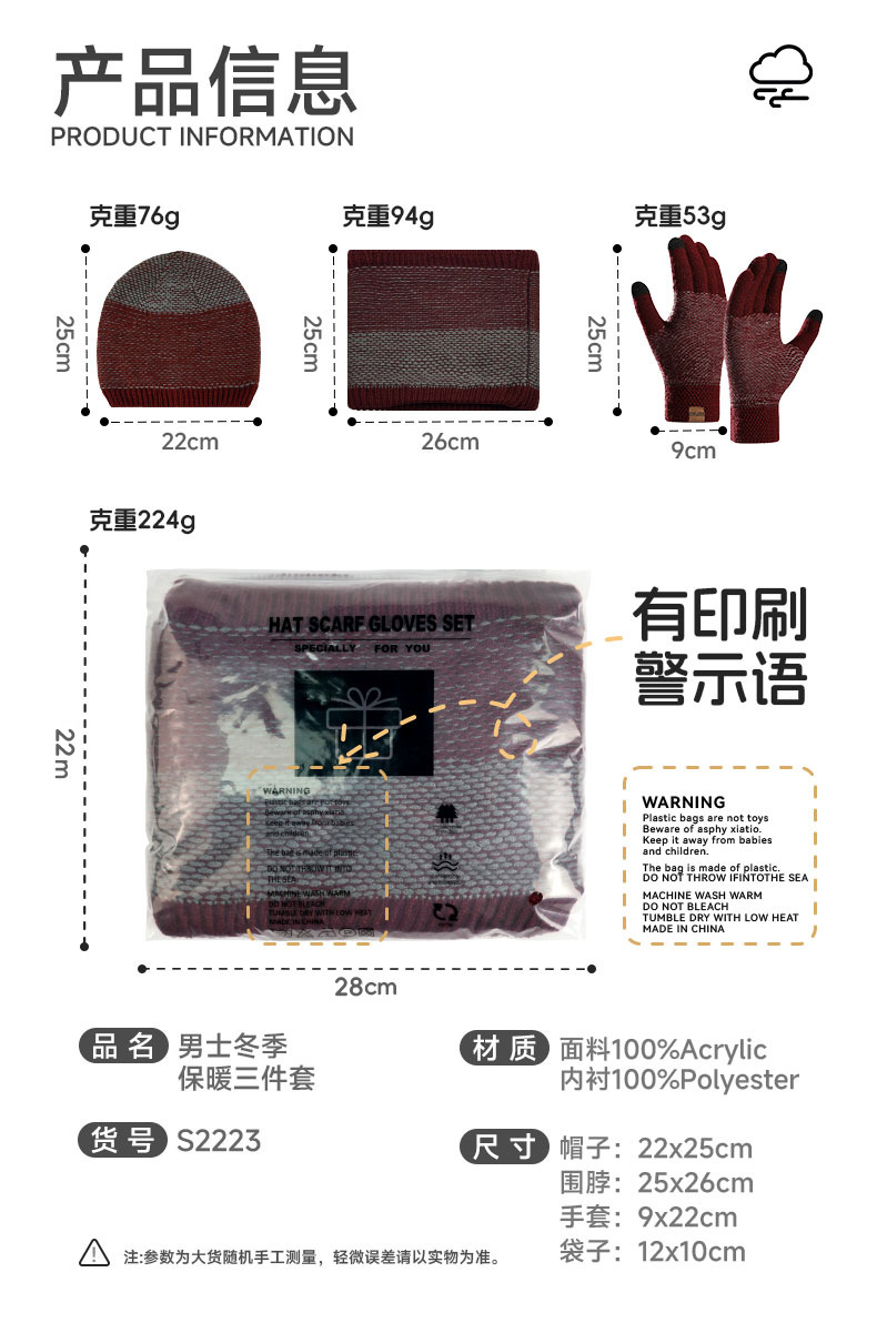 クロスボーダー専用マフラー手袋帽子3点セット冬防寒耳当て毛糸アウトドア保温ニット帽