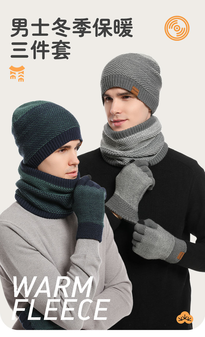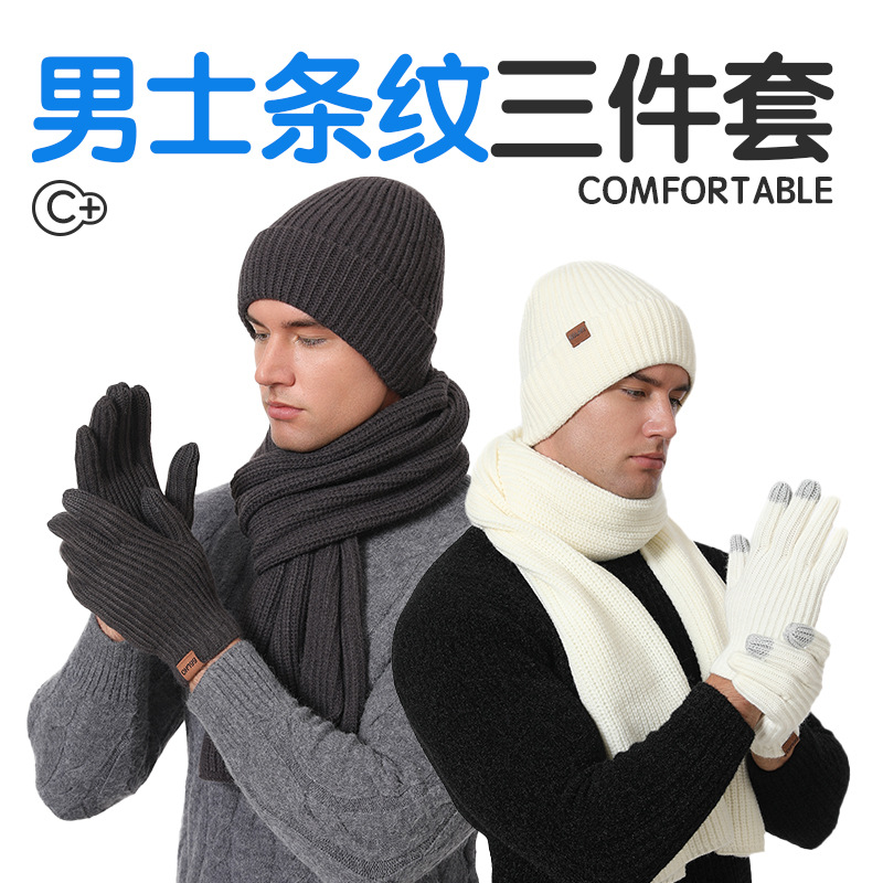 クロスボーダー専用メンズニット帽2025秋冬新作シープカシミア厚手帽子スカーフ手袋3点セット