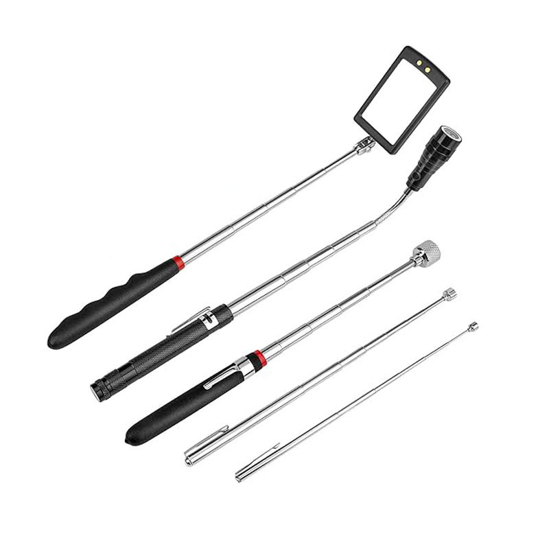 磁気ピックアップ磁力鉄棒伸縮延長棒自動車修理ツール角鏡円鏡懐中電灯ヘッド