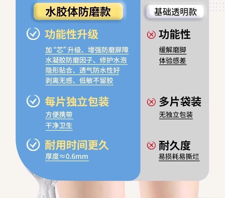 新款隐形水泡贴高跟鞋防磨贴后跟防磨脚贴独立包装防磨脚后跟贴片