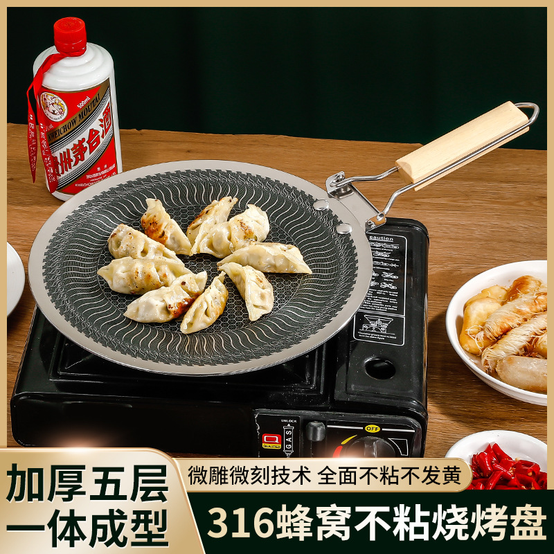 316ステンレスバーベキュー皿屋外携帯焼肉皿ハチの巣は焼き魚皿電磁ストーブの汎用焼き皿にくっつかない