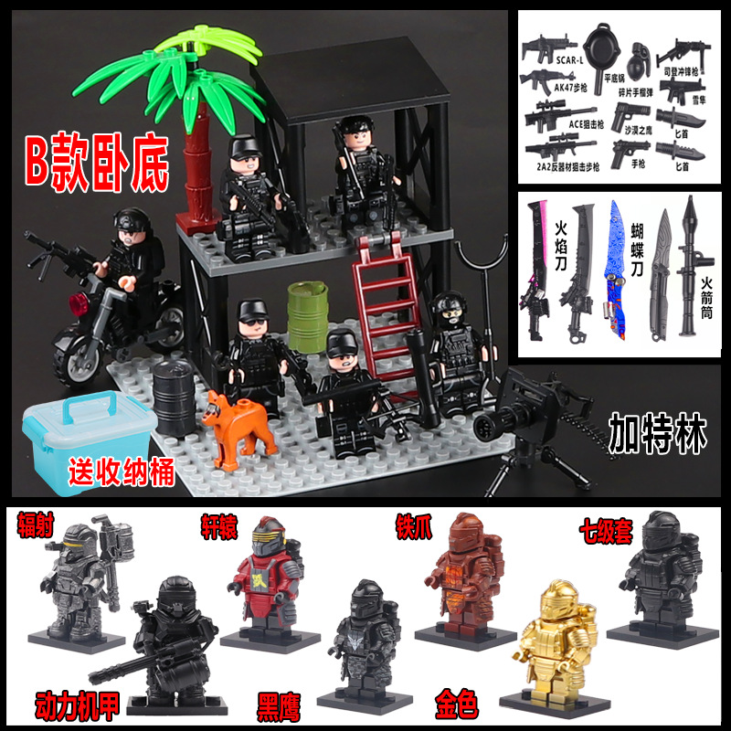 兼容乐高军事人仔反恐特种兵6警察小人偶拼装积木玩具MOC武器男孩