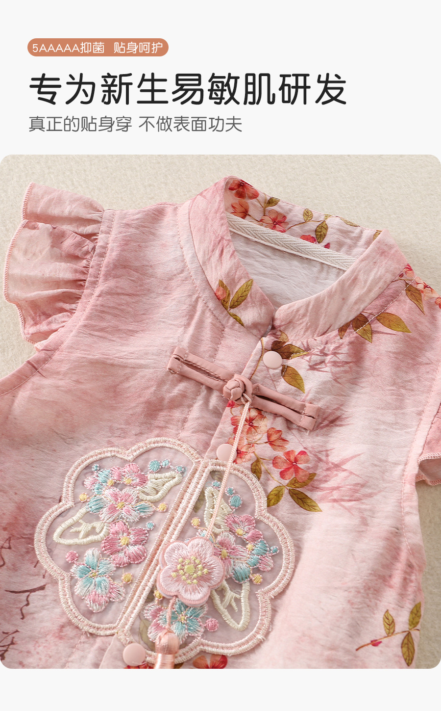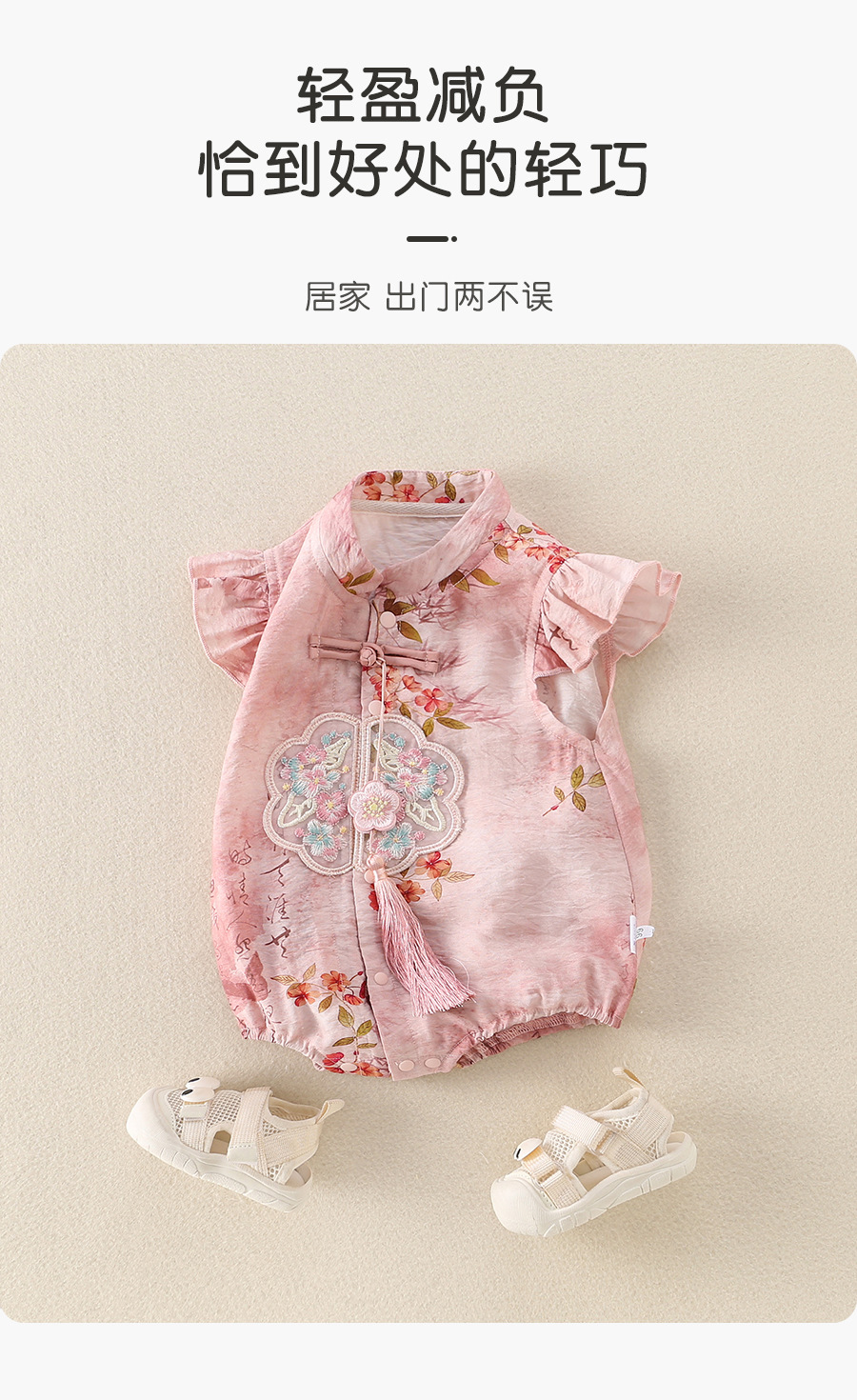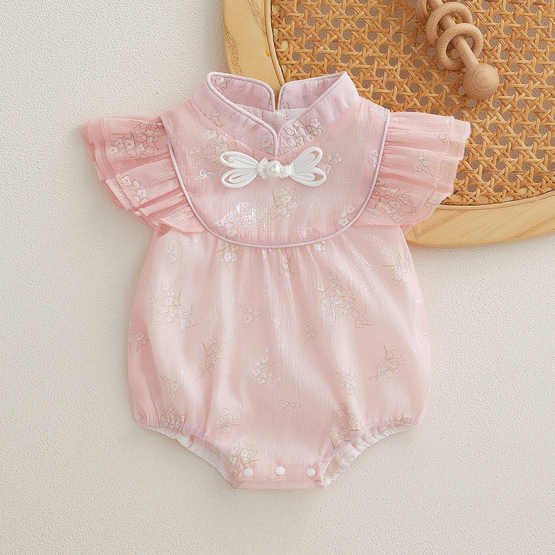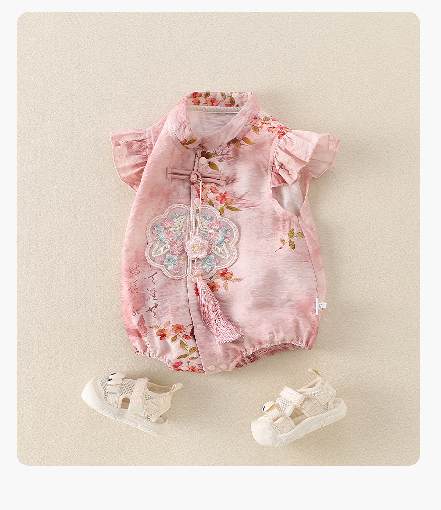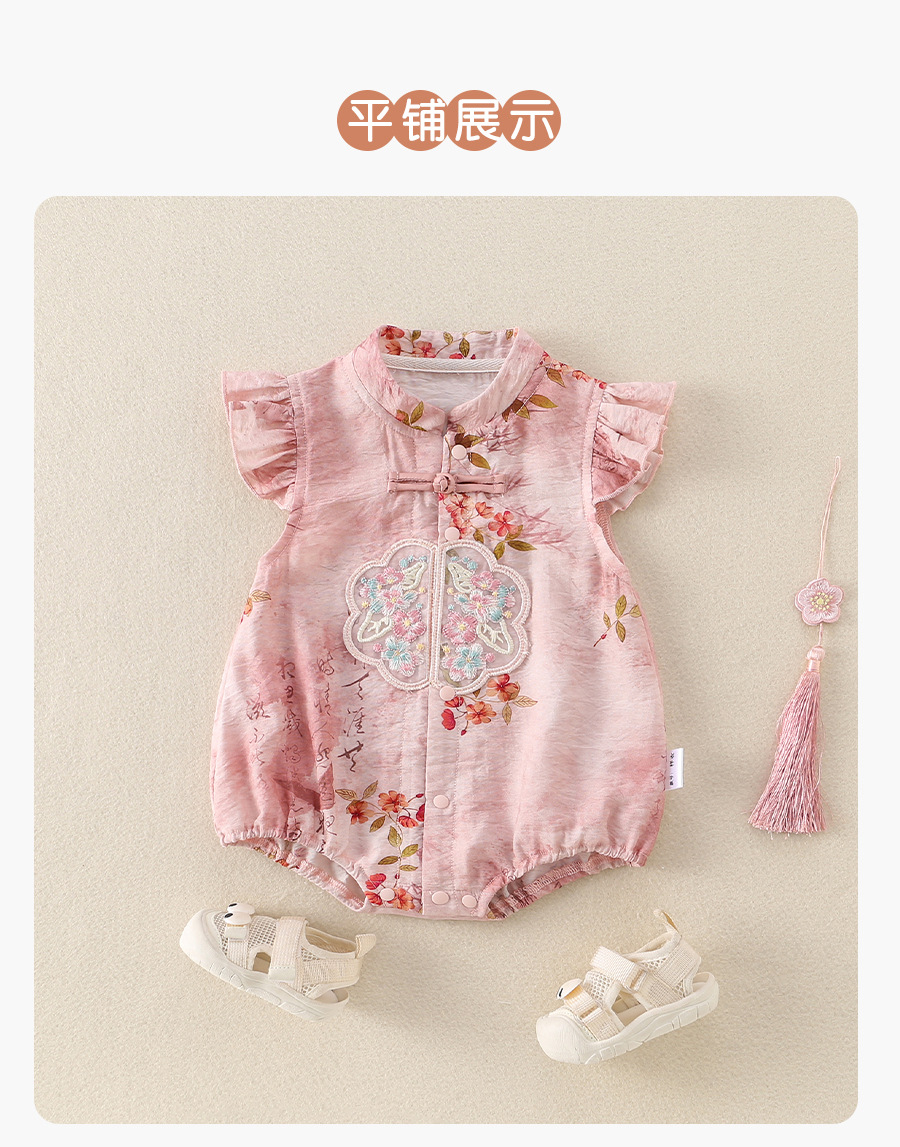 女宝宝初夏国风旗袍包屁衣婴儿飞袖唐装公主百天周岁仪式感外出服