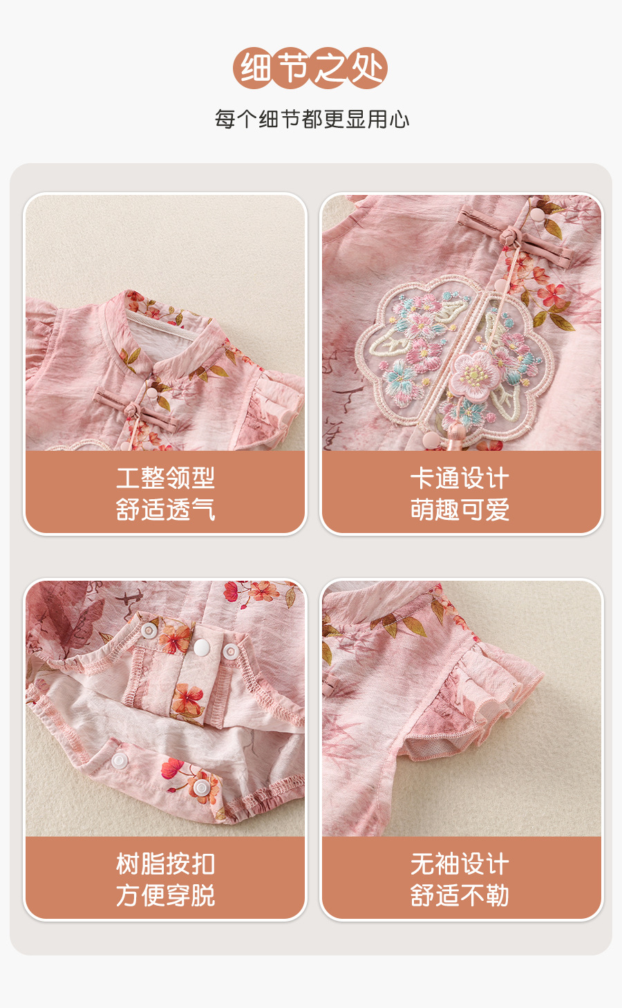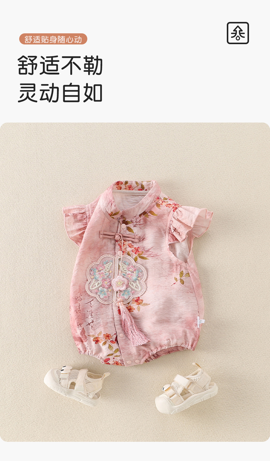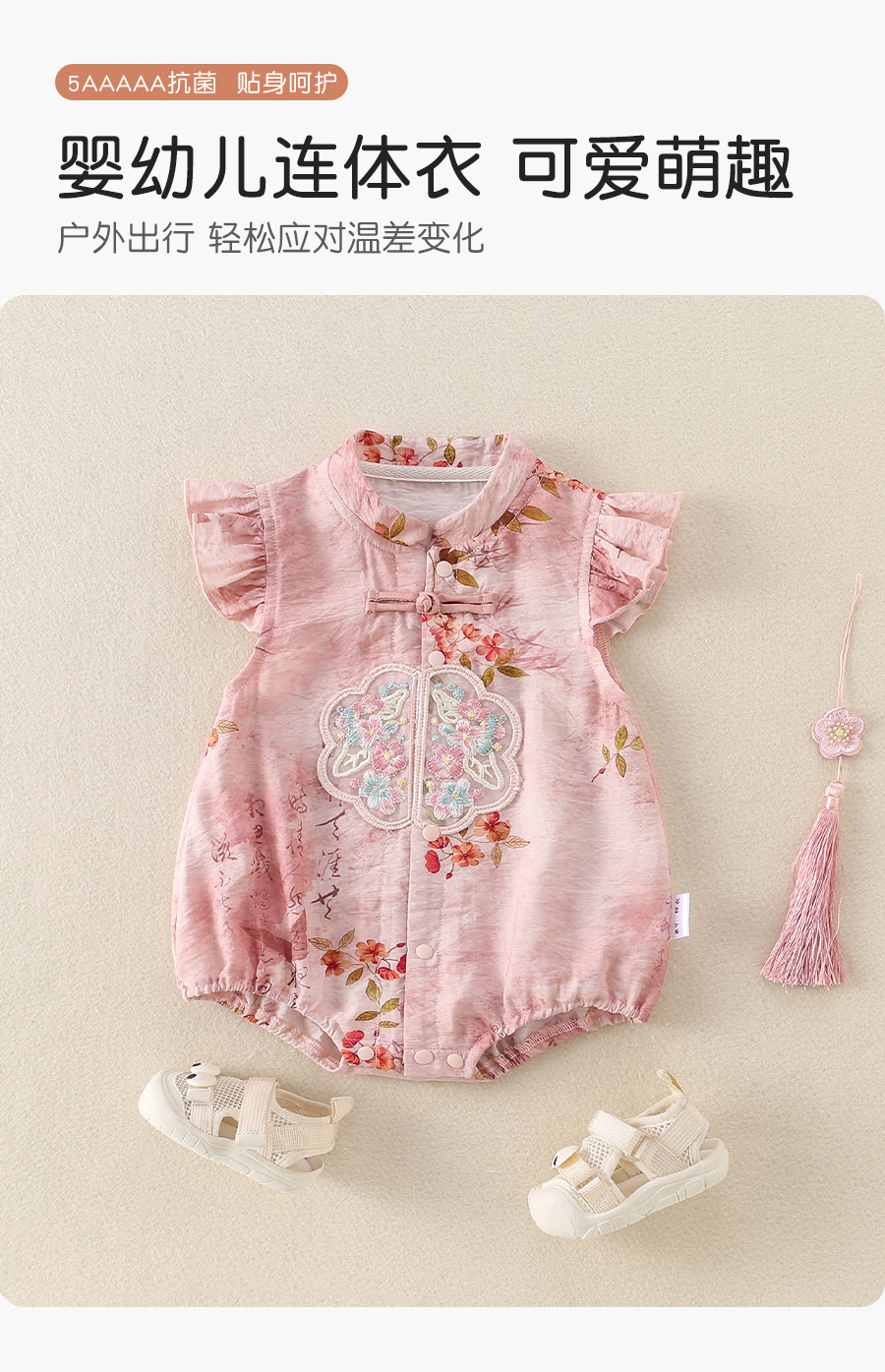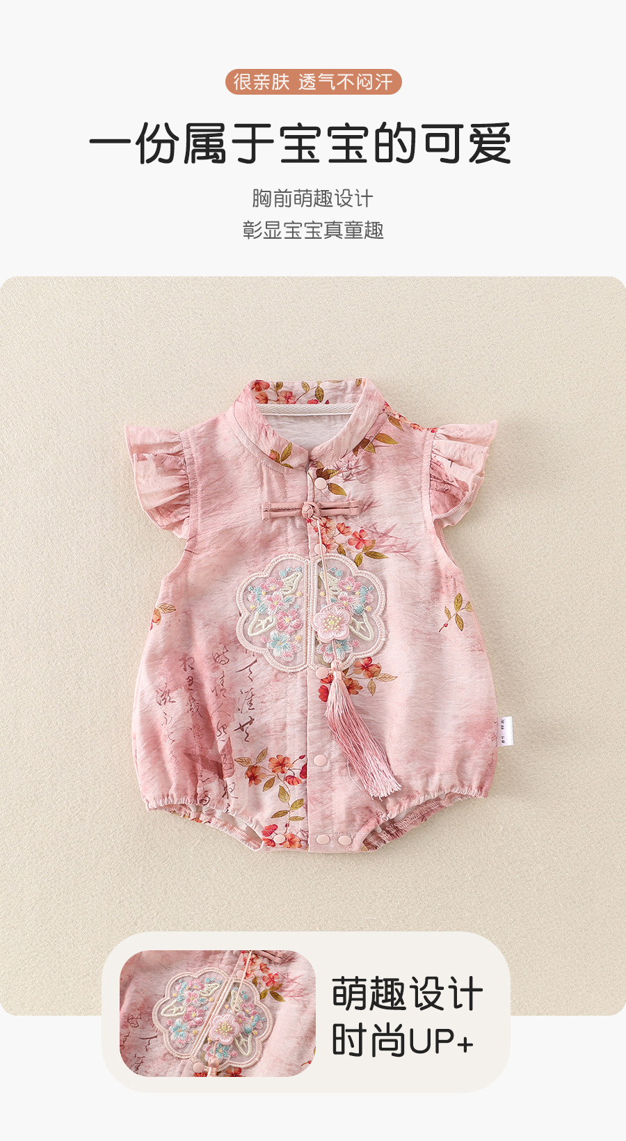 女宝宝初夏国风旗袍包屁衣婴儿飞袖唐装公主百天周岁仪式感外出服