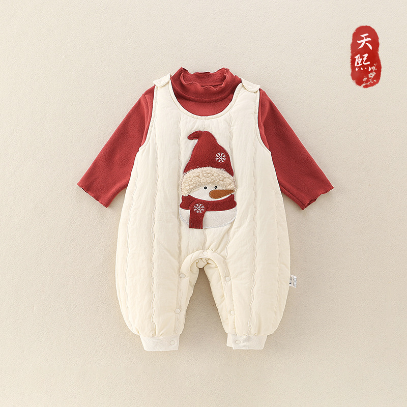 婴儿夹棉背带裤套装秋冬款2025新款宝宝加绒上衣深秋季衣服两件套