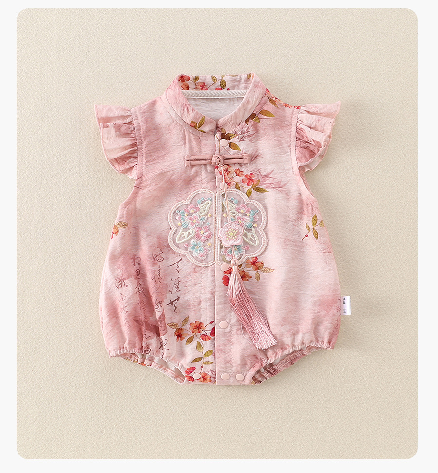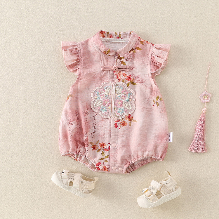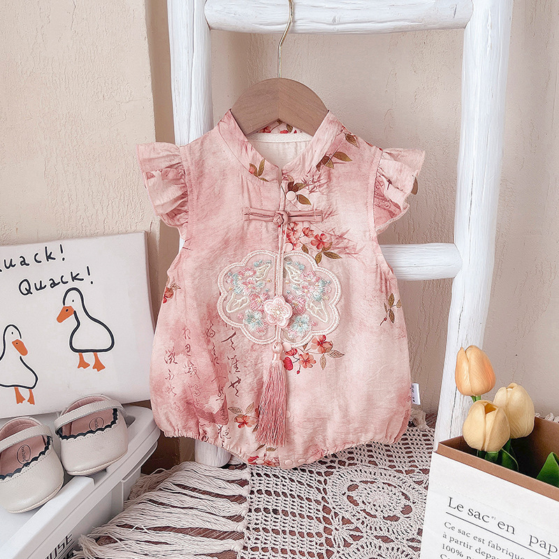 ベビー服、夏用ジャンプスーツ、ロンパース、女の赤ちゃん服、中国風の新しい中国風漢服、夏のお出かけ服