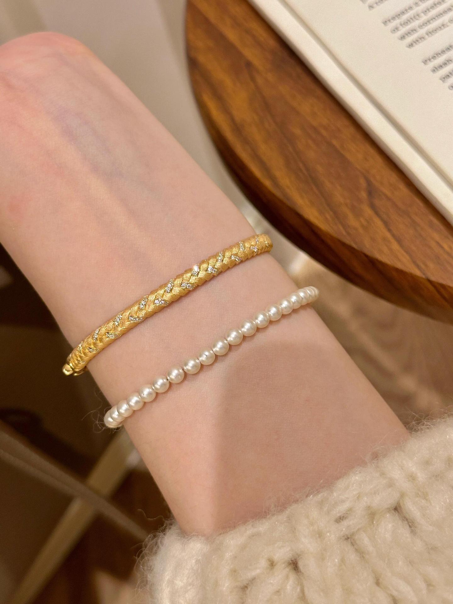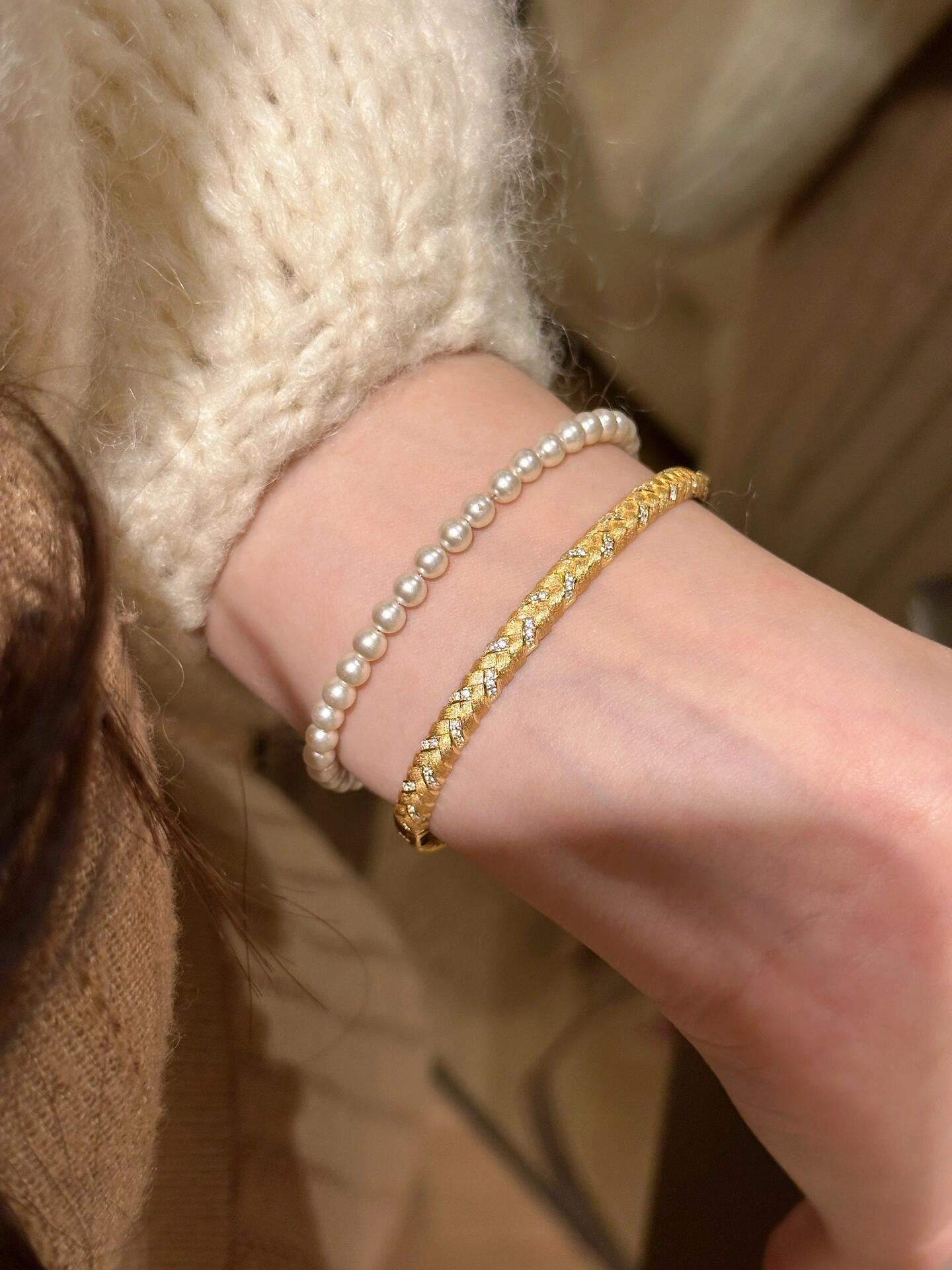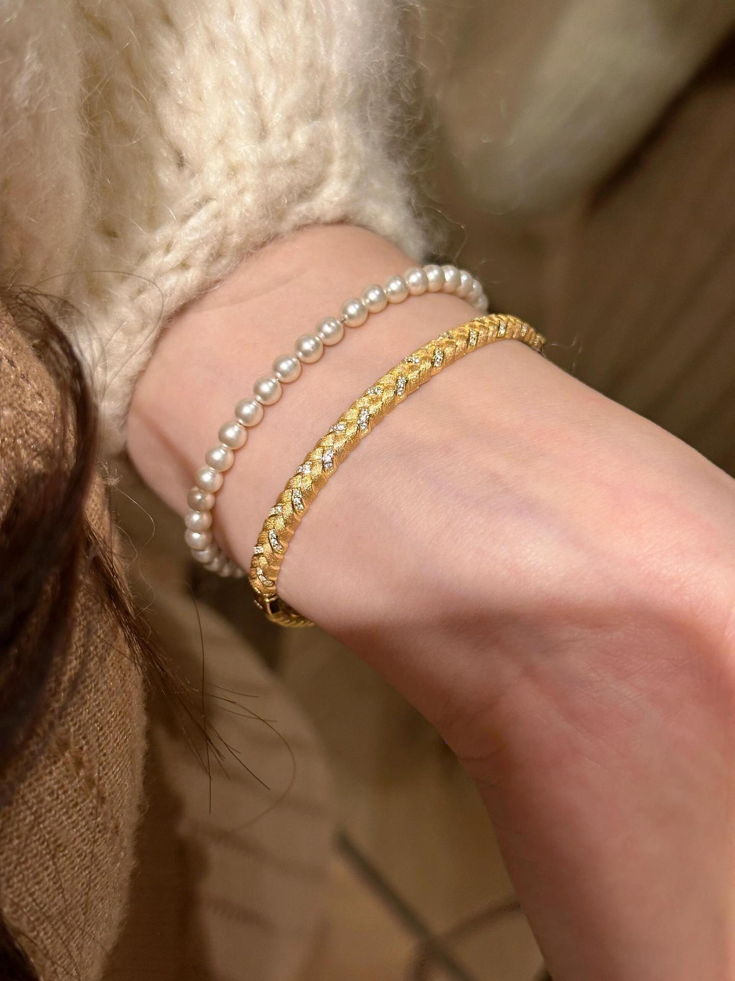 女性用中古ゴールドブラッシュドウィートブレスレット、ヴィンテージ絶妙なハイエンドブレスレット、軽くて豪華なニッチデザインブレスレット