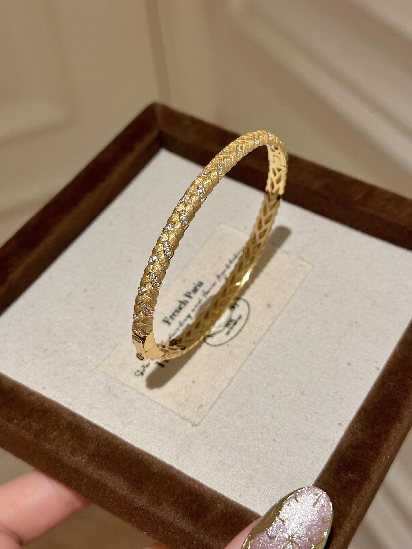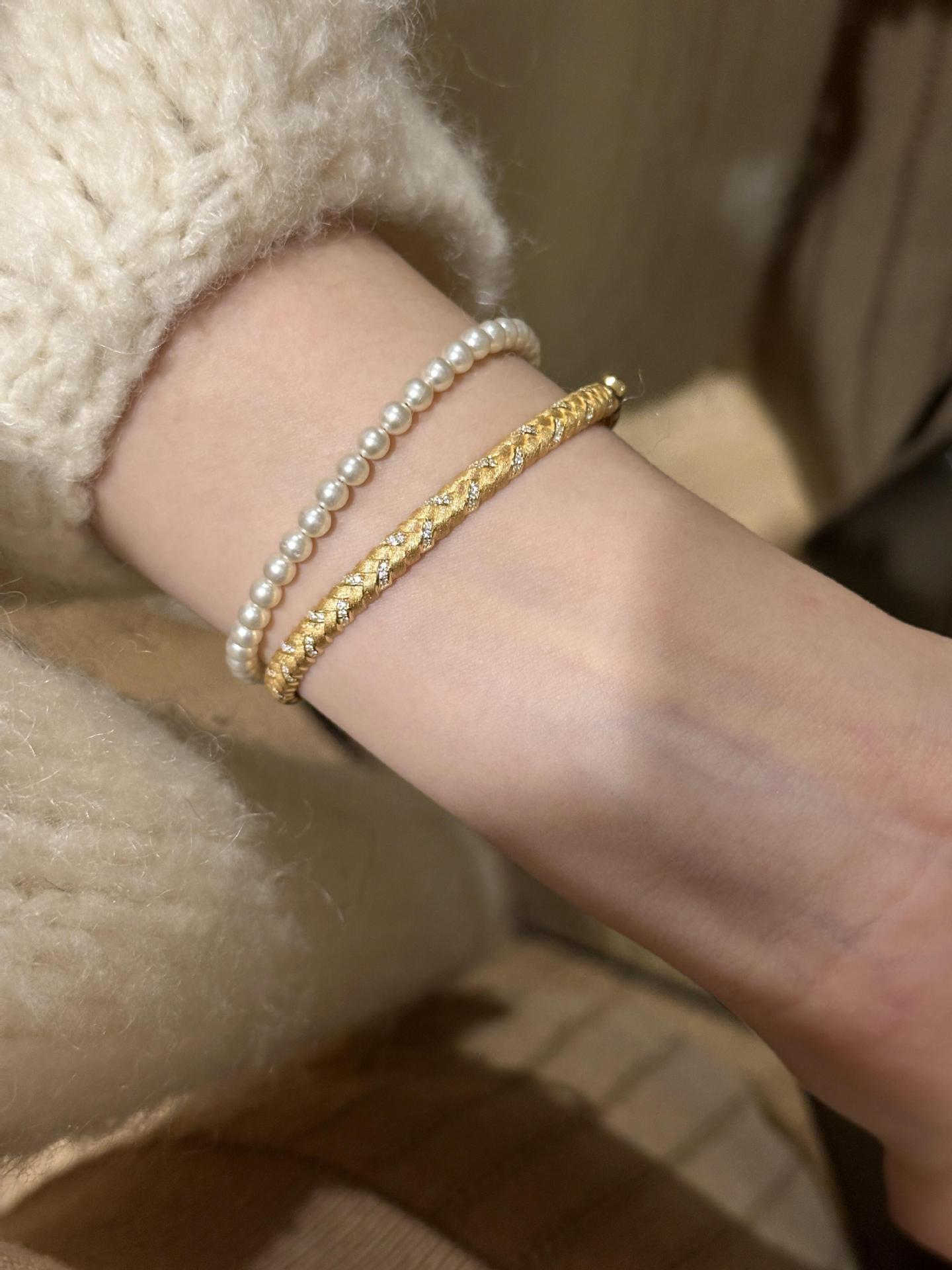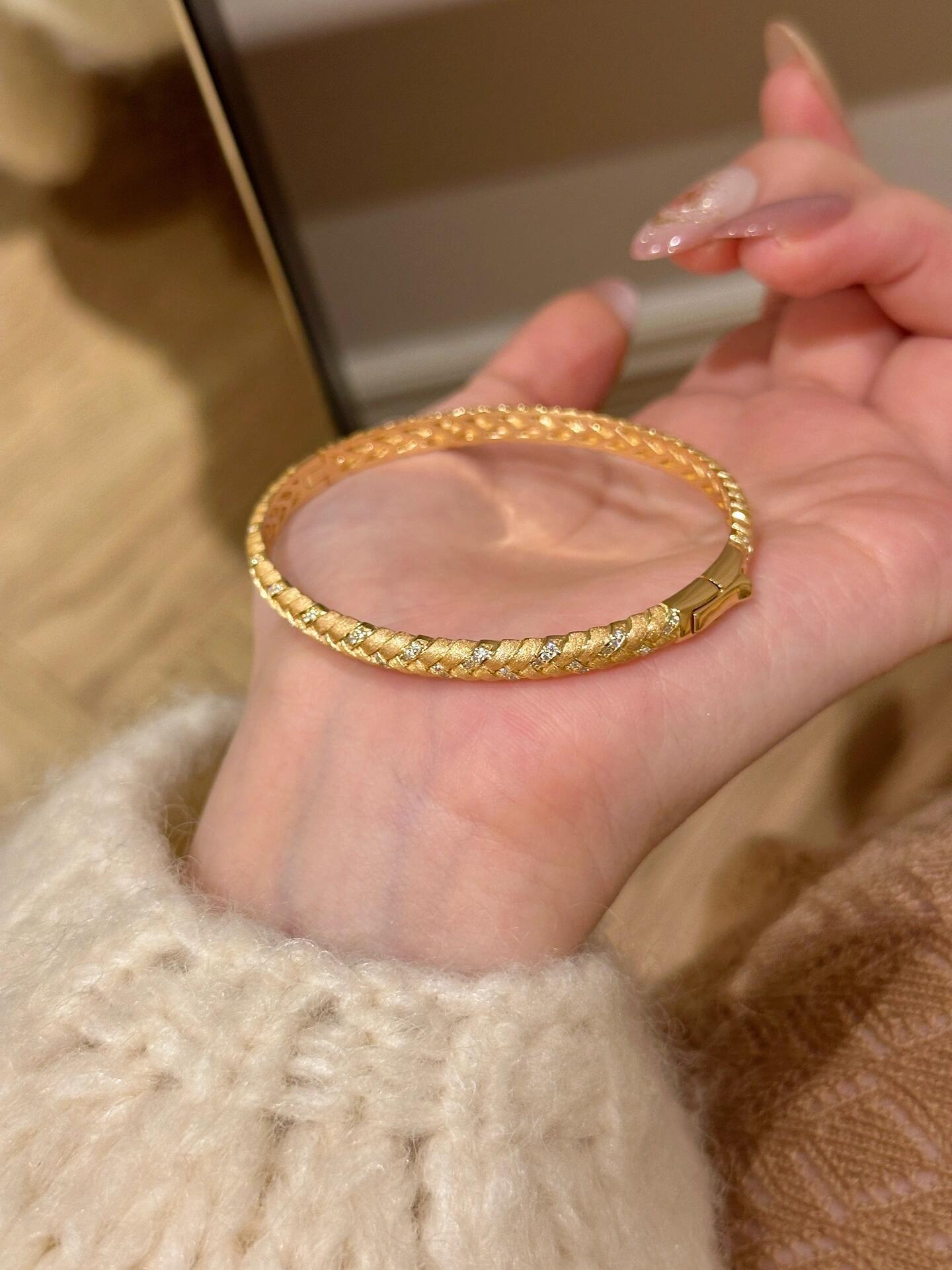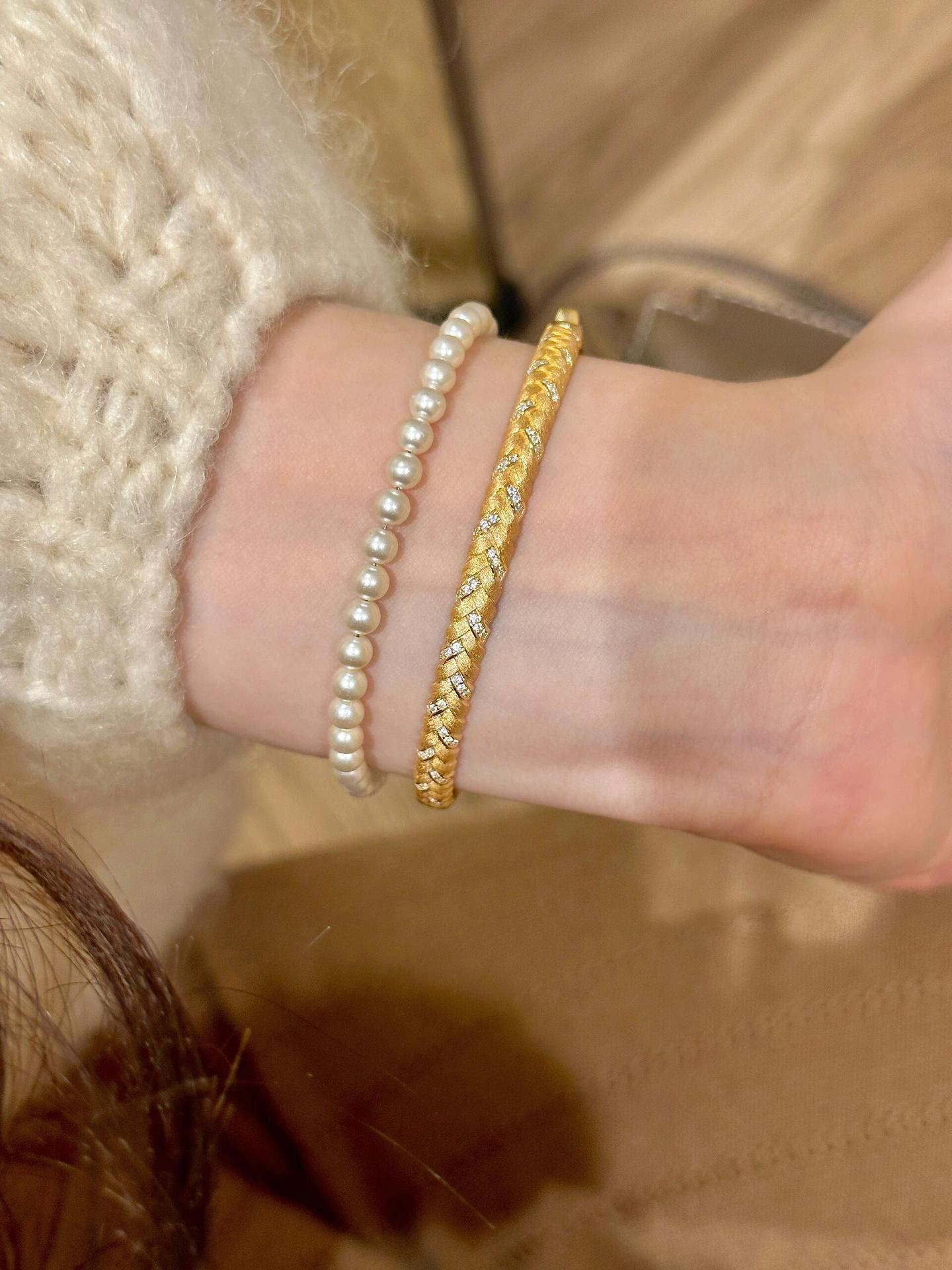 女性用中古ゴールドブラッシュドウィートブレスレット、ヴィンテージ絶妙なハイエンドブレスレット、軽くて豪華なニッチデザインブレスレット