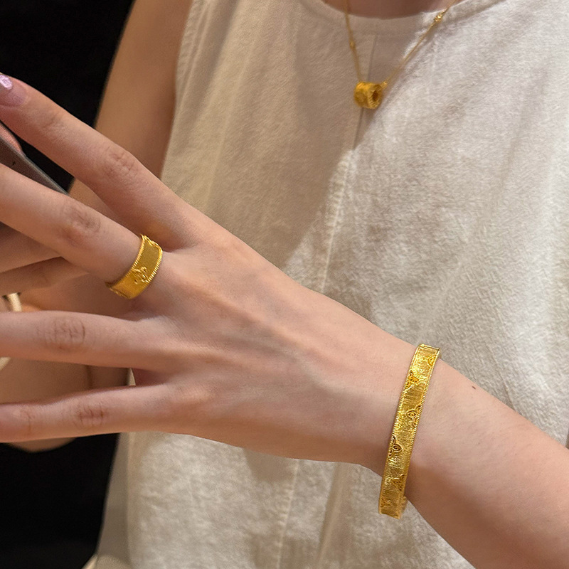 小红书爆款绸缎感四叶窗花手镯古法手环戒指小巧精致项链一件代发