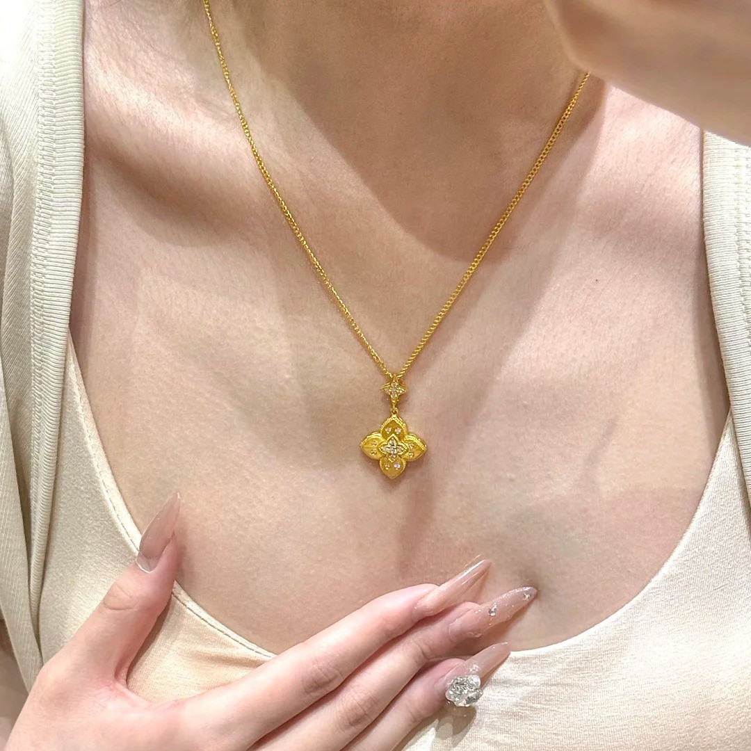 Xiaohongshuの人気のヨーロッパとアメリカの宮殿スタイルの起毛四つ葉のクローバーペンダントネックレス、軽くて豪華なニッチな気質、多用途の鎖骨チェーン
