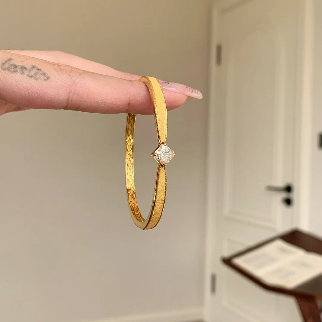 小红书爆款银色拉丝方钻手镯爆闪百搭轻奢气质精致款手饰一件代发