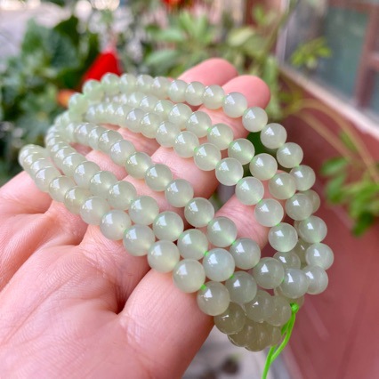 和田玉碧玉ネックレス氷透陽緑8mm円珠玉玉仏珠は母にプレゼントして証明書を持っている