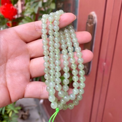 メーカー卸売天然ホータン翡翠清水青海素材 6 ミリメートルネックレス 108 フォーブスビーズ素材ぶら下げチェーンネックレス