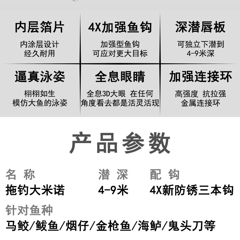 远投大米诺路亚饵加强钩17cm/19.5cm/22.5cm 海钓鲅鱼金枪鱼饵仿