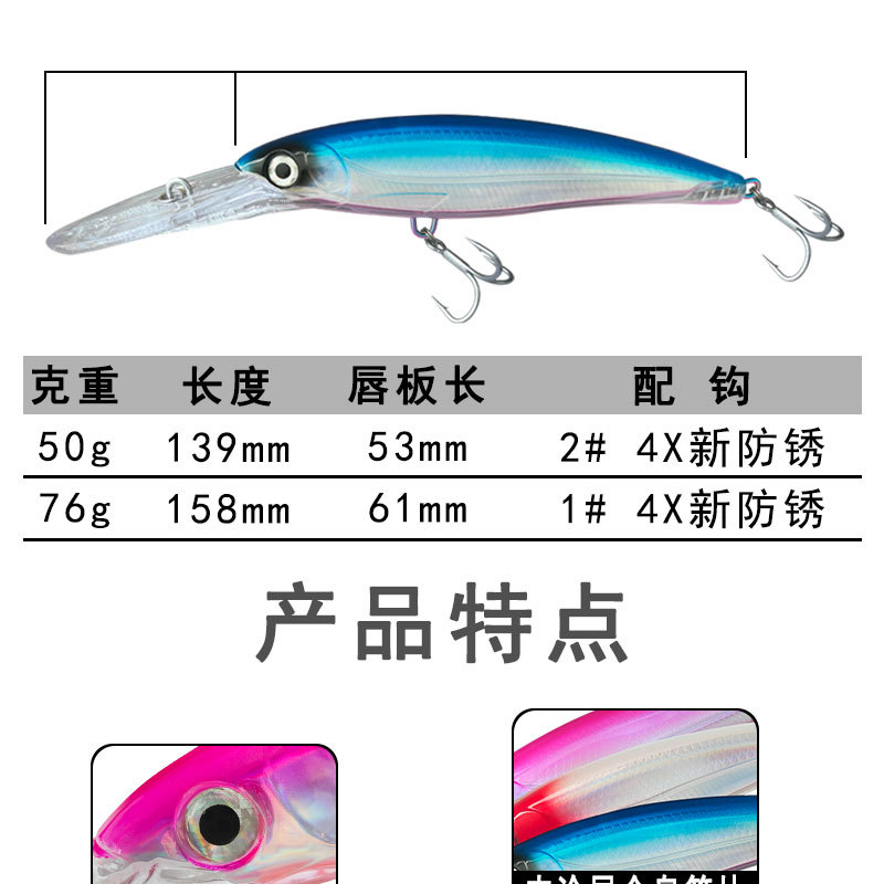 海釣り 遠投 ロングタン マイノルアー 50g 76g トローリング ディープダイビング ラージウェイト フェイクベイト マグロ
