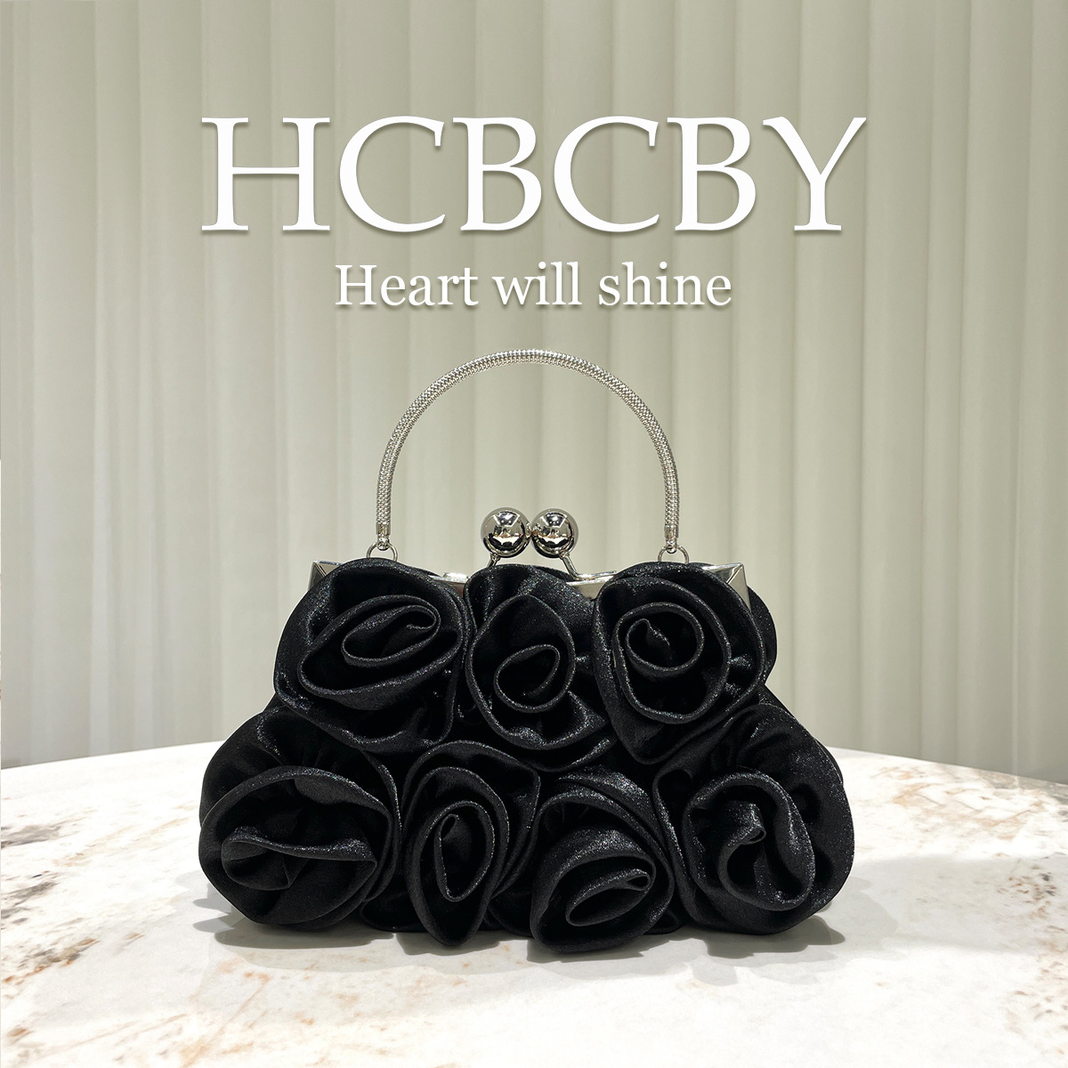 新款布艺花朵立体小包优雅玫瑰花晚宴包气质百搭手拎包缎面包包