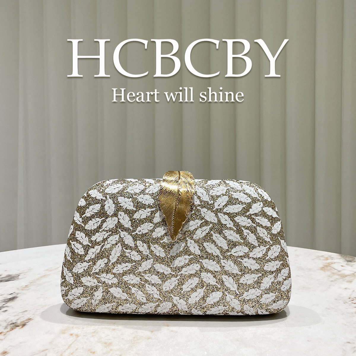 金色格利特树叶印花晚宴包 复古优雅叶子搭扣 名媛时尚气质手拿包