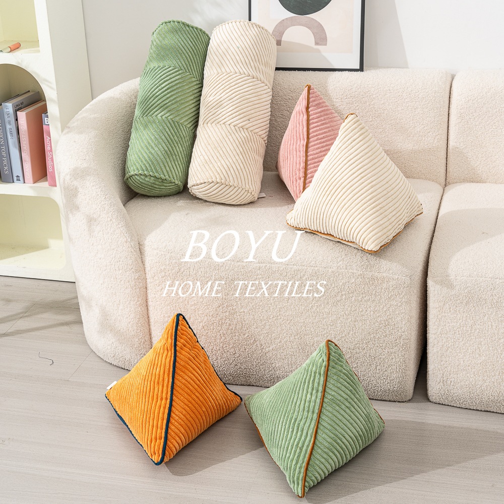 25 新しいコーデュロイシリンダー枕コーデュロイステッチソファクッションクリエイティブ形状ピラミッドクッションコア付き