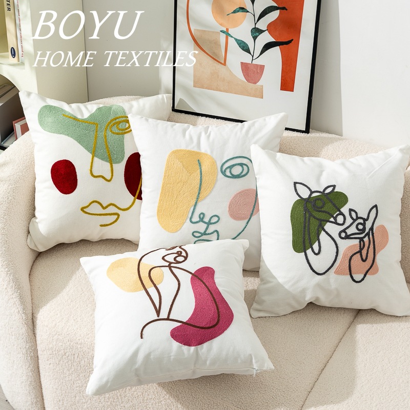 新品モランディ抽象ライン抱き枕カバー猫犬刺繍抱き枕イラストアートクッションソファーベッドサイドクッション
