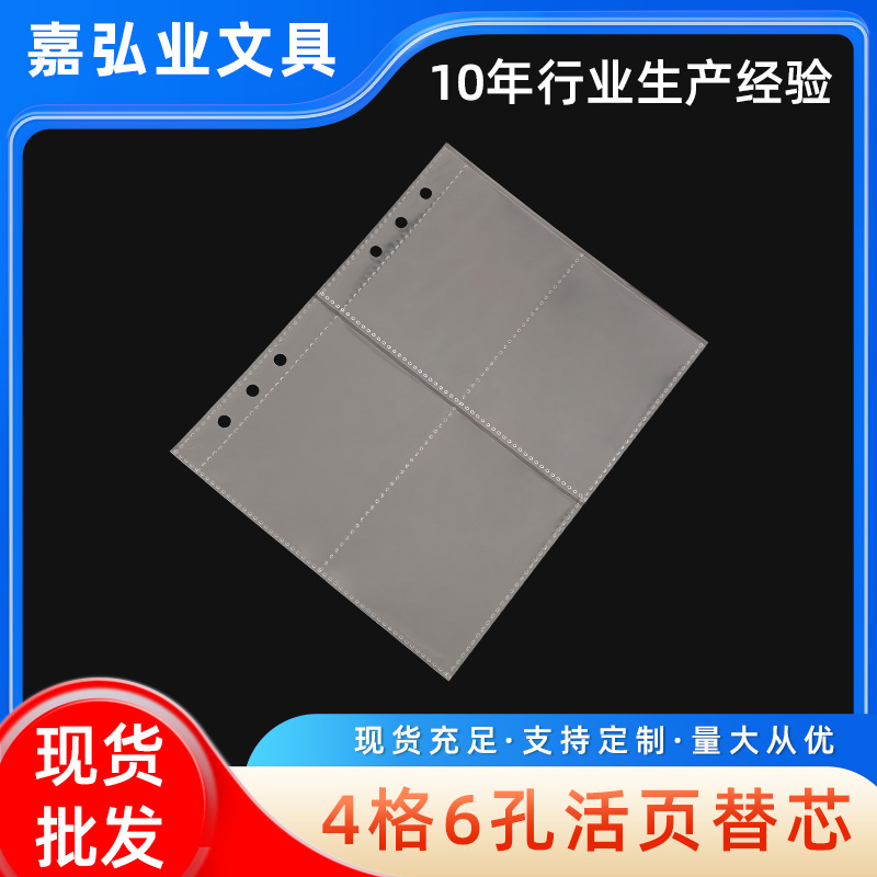 深センメーカーは、4 コンパートメントと 6 穴の PP 内側ページルーズリーフ交換用コアデジタル印刷フォトリーフルーズリーフカードブック内側ページルーズリーフを生産しています