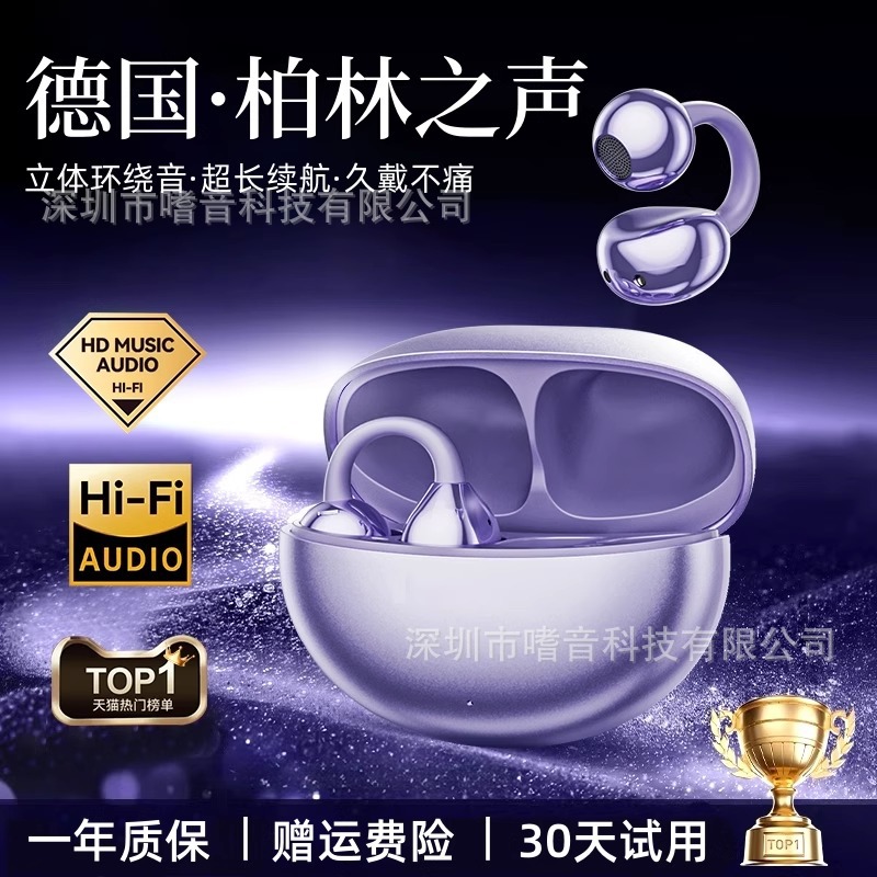 2025年新型BluetoothイヤホンS6、クリップ式イヤホン、非インイヤー型ワイヤレスイヤホン、長時間装着しても痛くない、Huawei対応