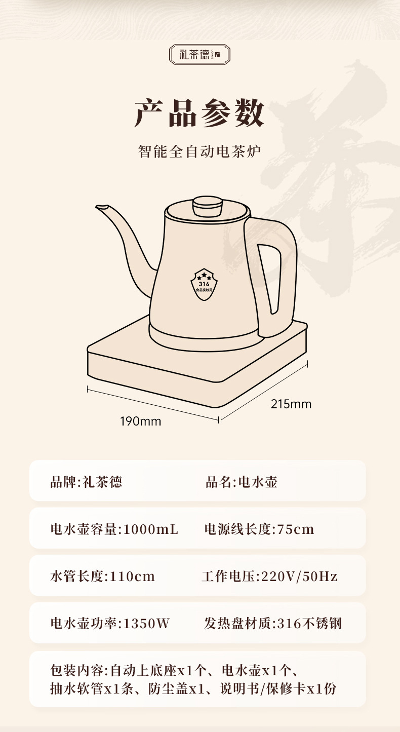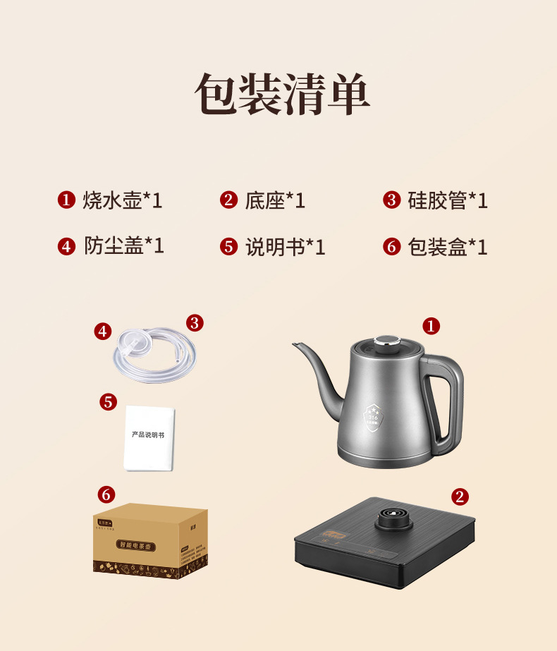 ベース、ケトル、給水パイプ、説明書