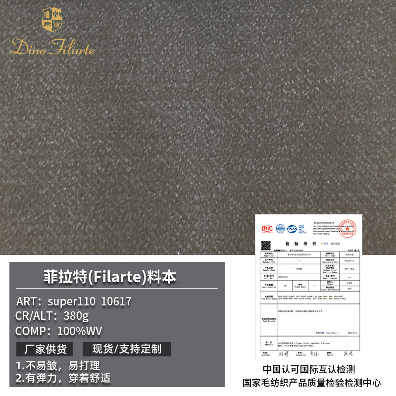 菲拉特100%羊毛西装面料定制休闲服外套面料253g/㎡纱染super110
