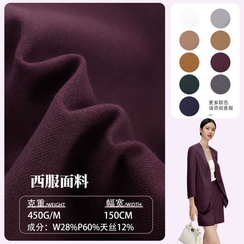 現物450G精紡天糸ウールスーツ生地抗シワ可機洗濯ビジネス婦人服職業綾布