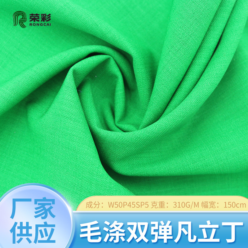 ウールポリエステルダブルストレッチフランネル梳毛ウールスーツ生地春と秋の軽くて通気性のある弾性織り無地