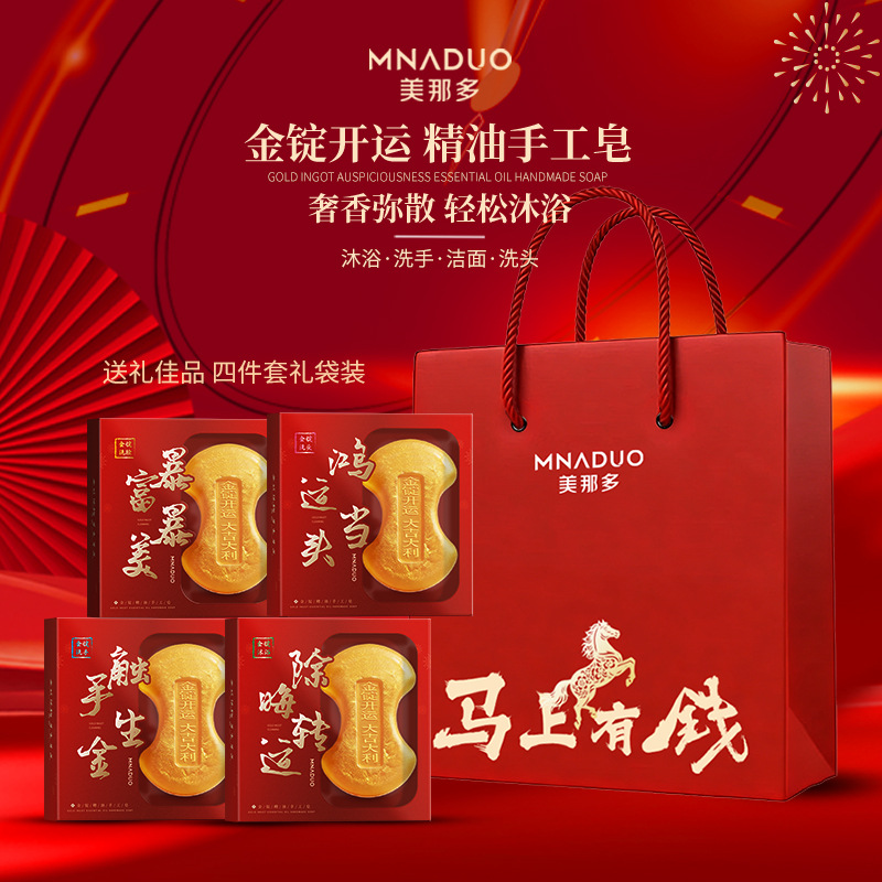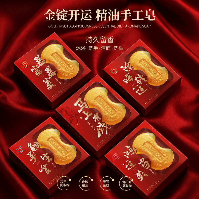 沐浴洗手洁面洗头4合一持久留香精油手工皂高颜值清洁香皂礼盒装