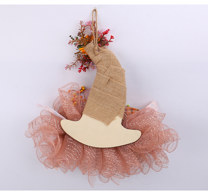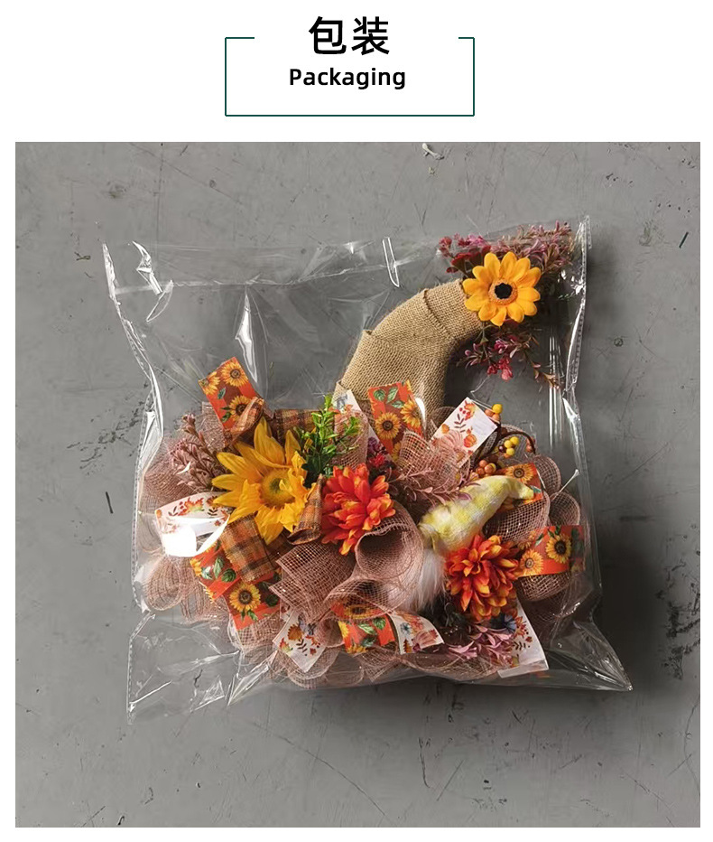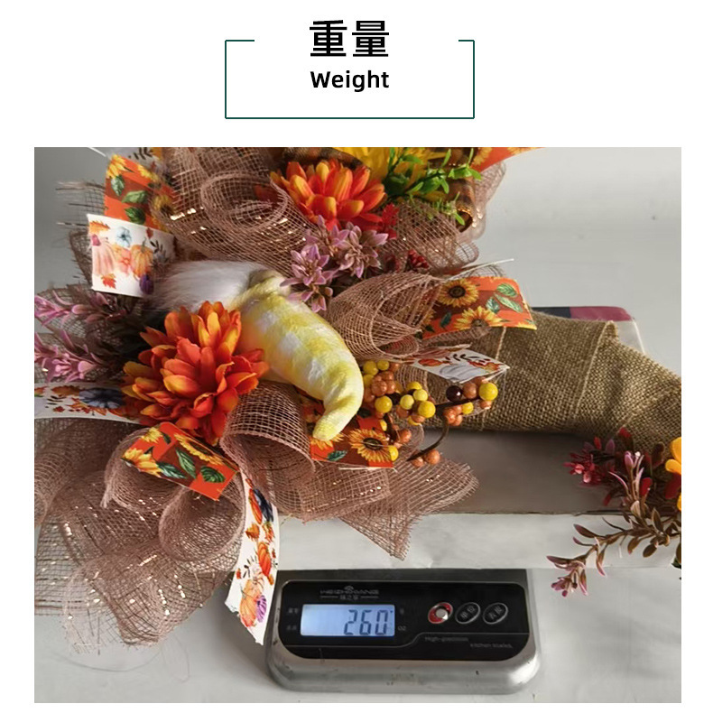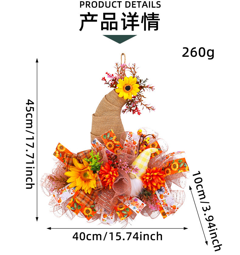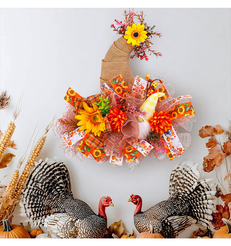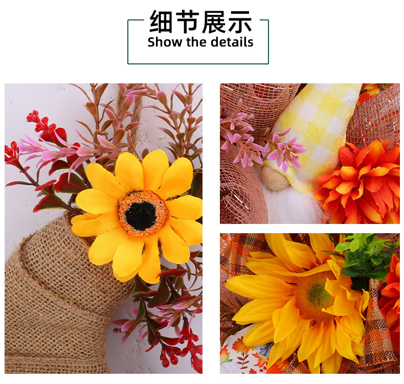 アマゾン秋のメッシュ人形花輪ドアハンギング、庭のひまわり壁掛け、収穫祭の装飾小道具