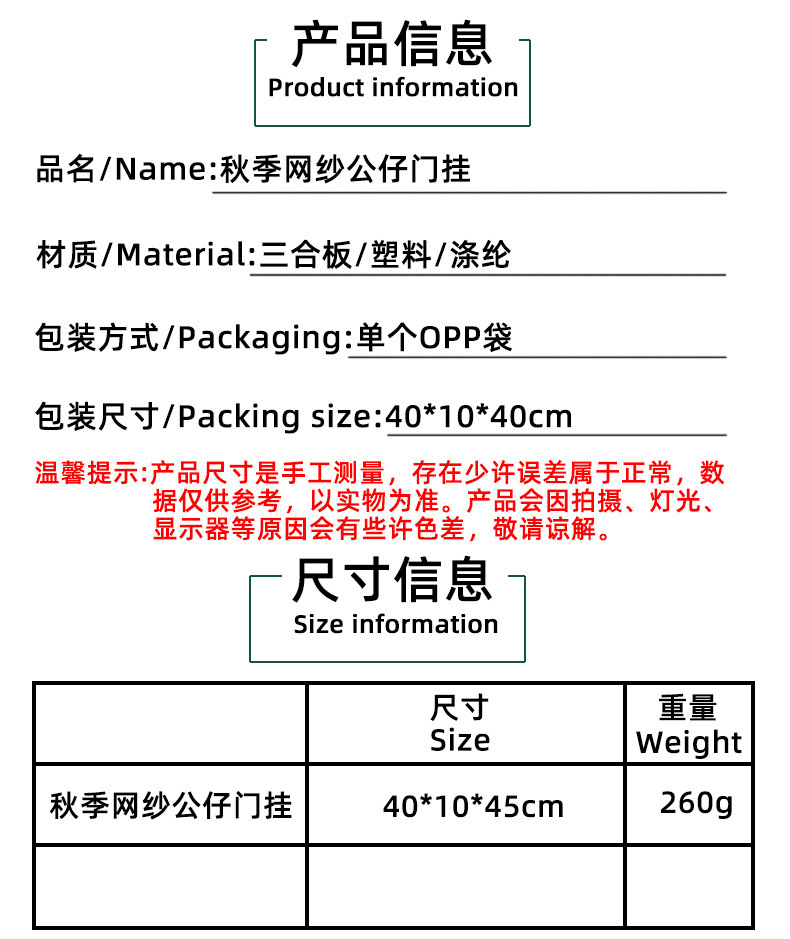 サイズ 秋のメッシュドールドアハンギング