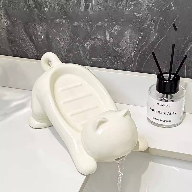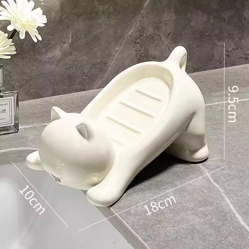 水切り石鹸ケース家庭用手洗い洗面台創意可愛いトイレ猫石鹸ケース穴なし棚
