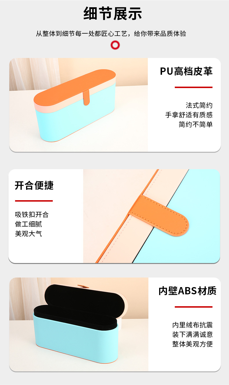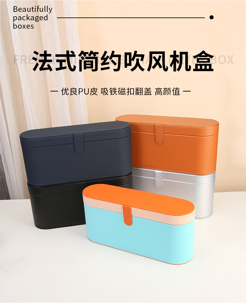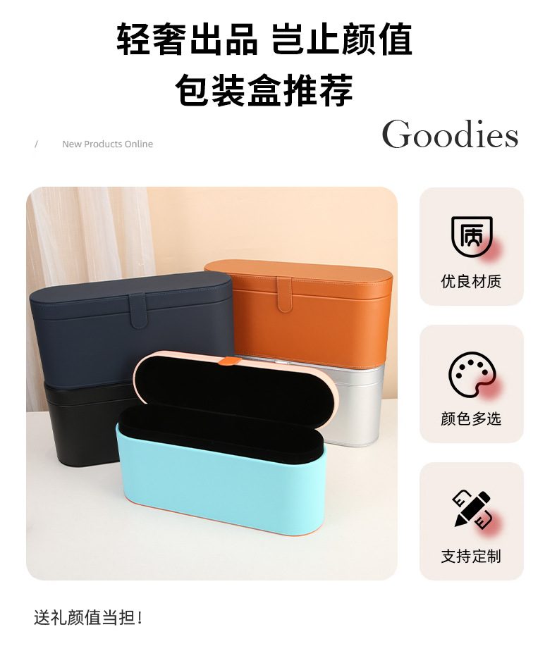 戴森吹风机包装盒吹风机卷发棒pu皮空盒圆形吹风机收纳盒定 制