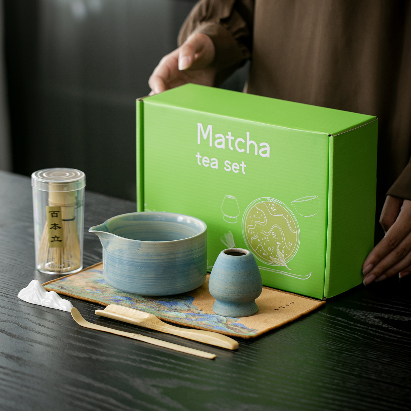 跨境日式带嘴抹茶碗陶瓷茶筅茶筅立抹茶刷百本立宋代点茶茶艺套组