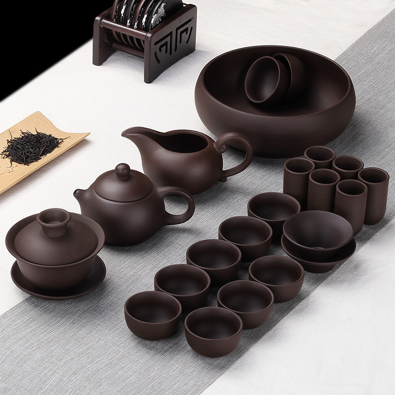 紫砂茶セットフルセットオリジナル鉱物古い紫粘土カンフー茶セットティーカップティーポットカバーボウルホームオフィスシンプル