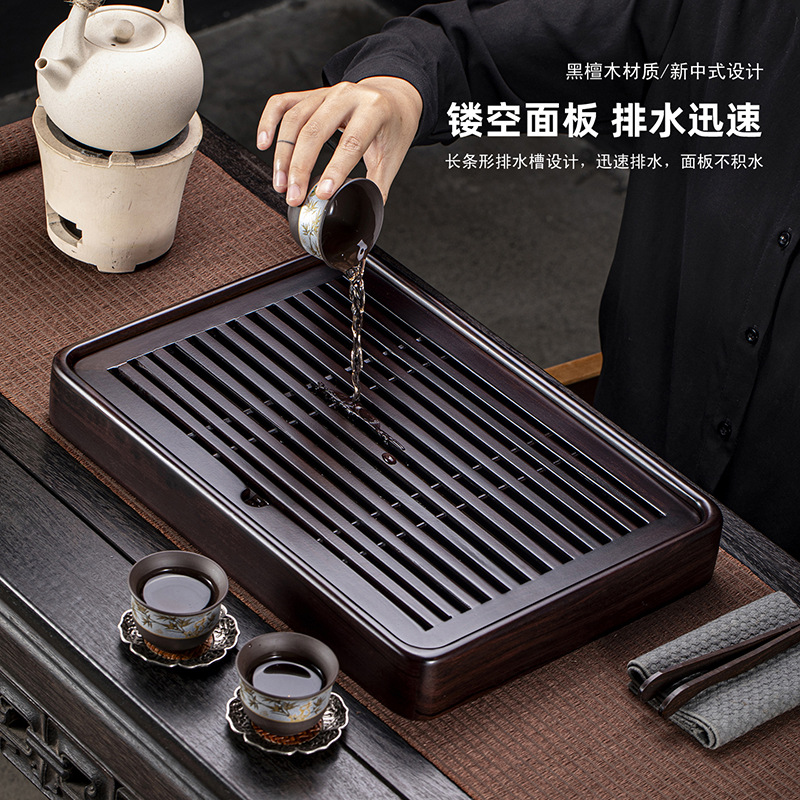 批发天然黑檀木茶盘家用日式小型干泡盘长方形沥水盘储水式茶台