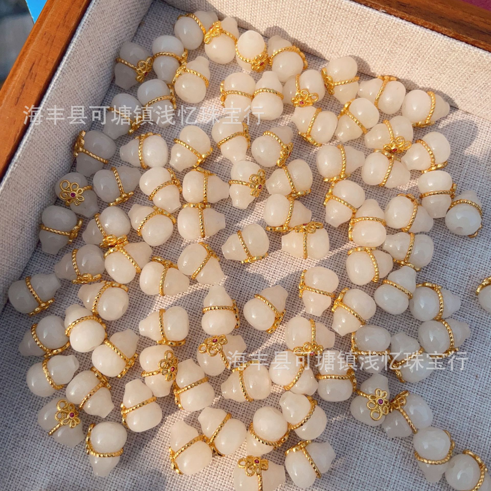 天然白翡翠ひょうたん s925 シルバー象嵌中空花ひょうたん絶妙な貫通穴多用途ひょうたん diy アクセサリー