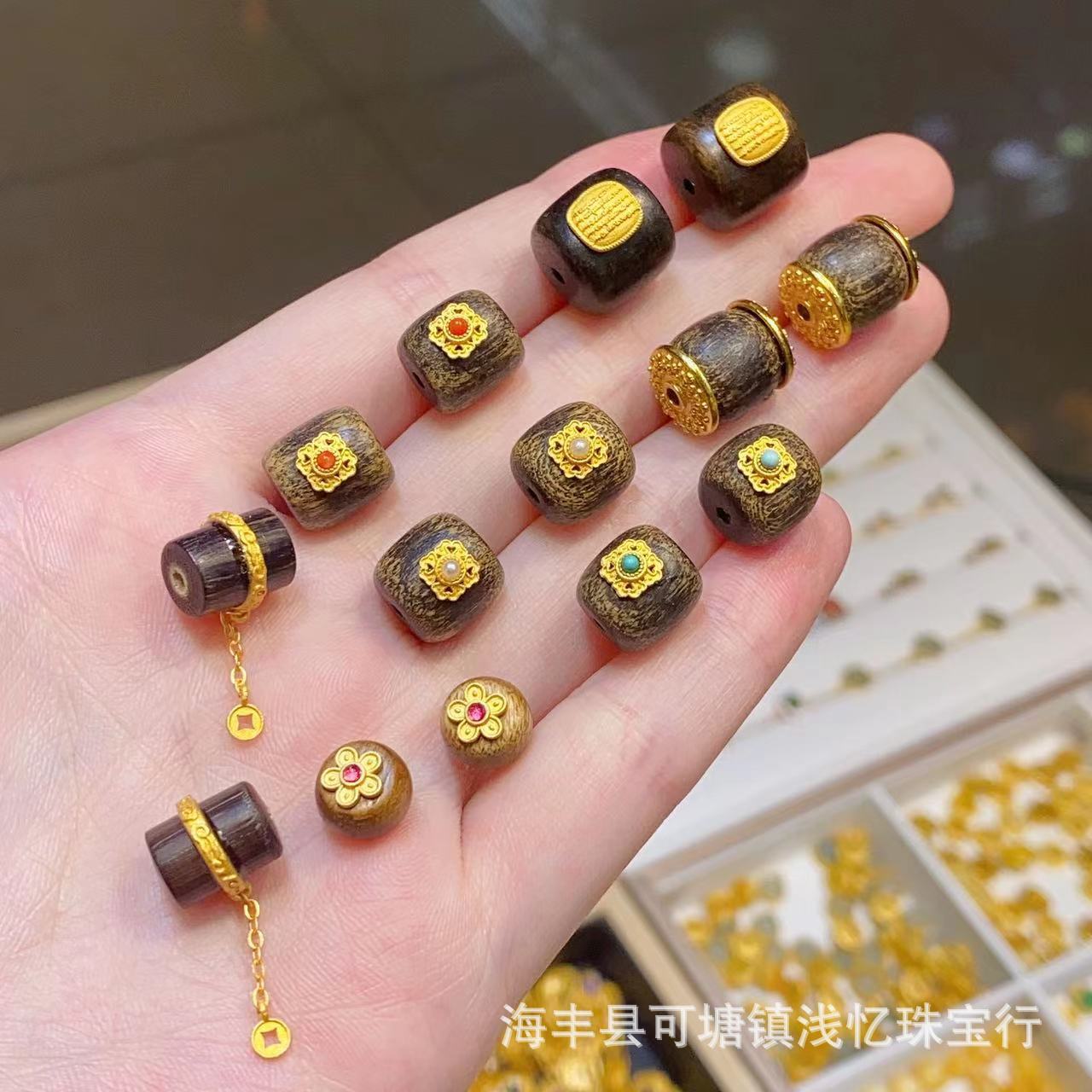銀金メッキ沈香木diyアクセサリー古法金モザイク木パッチ桶珠diyブレスレットアクセサリー部品6