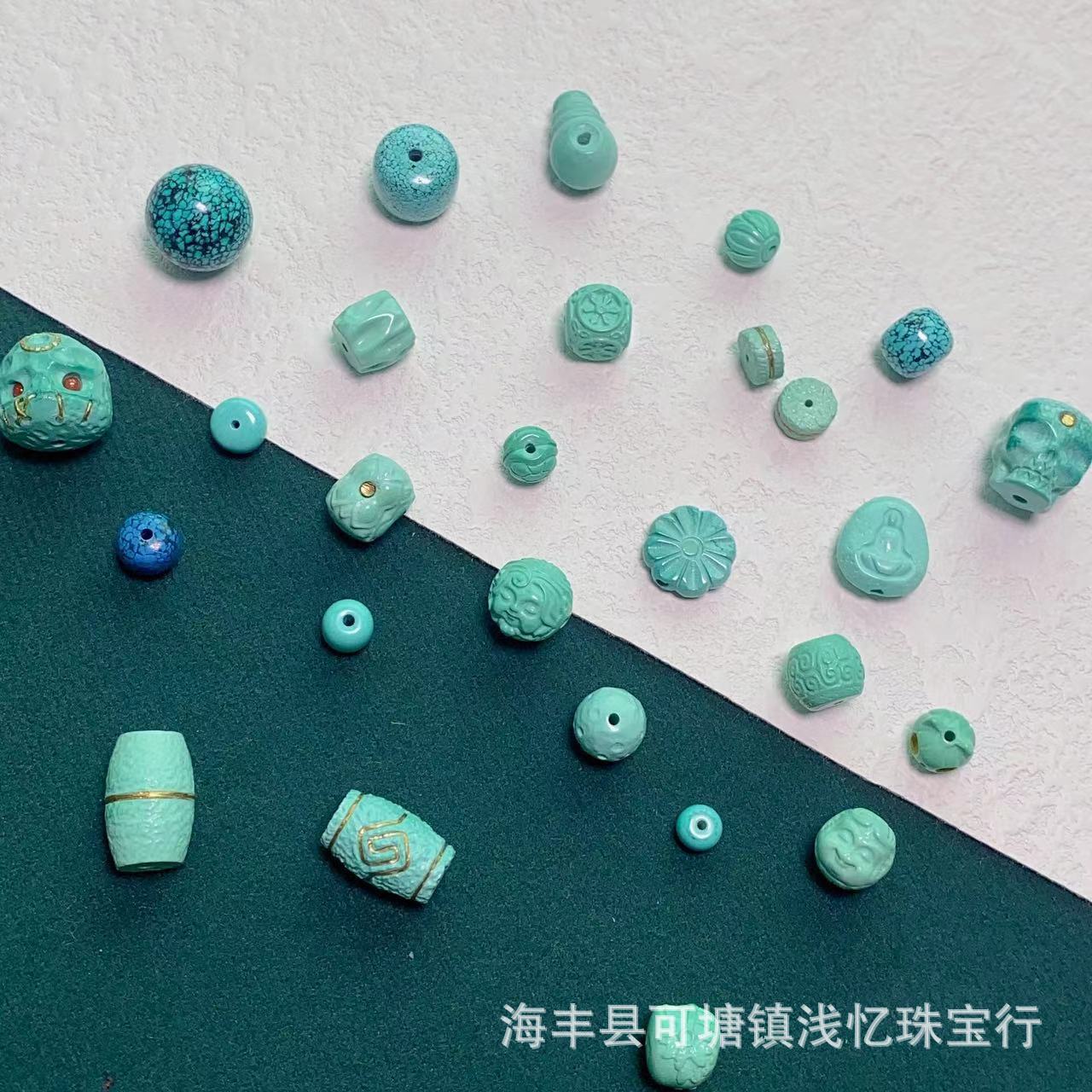 天然松石伴生鉱菱マグネシウム松石文遊び部品グリーン三通パン隔珠手串diy部品