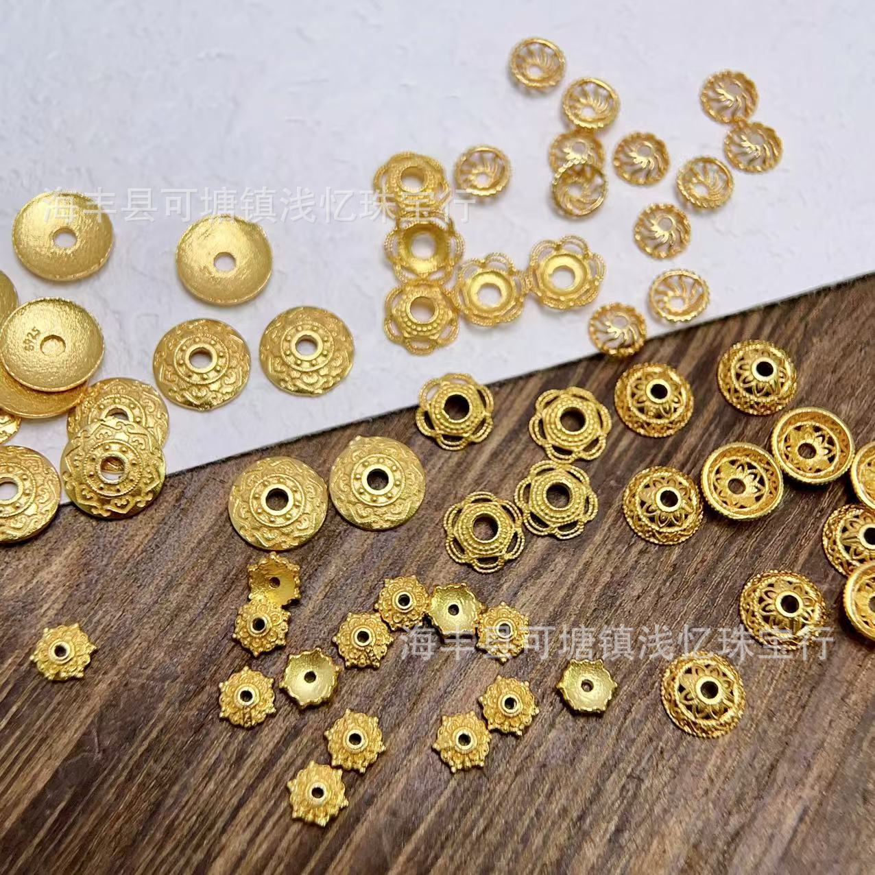 通体s925銀メッキ24k金スペーサー花托隔珠手作りビーズ材料部品