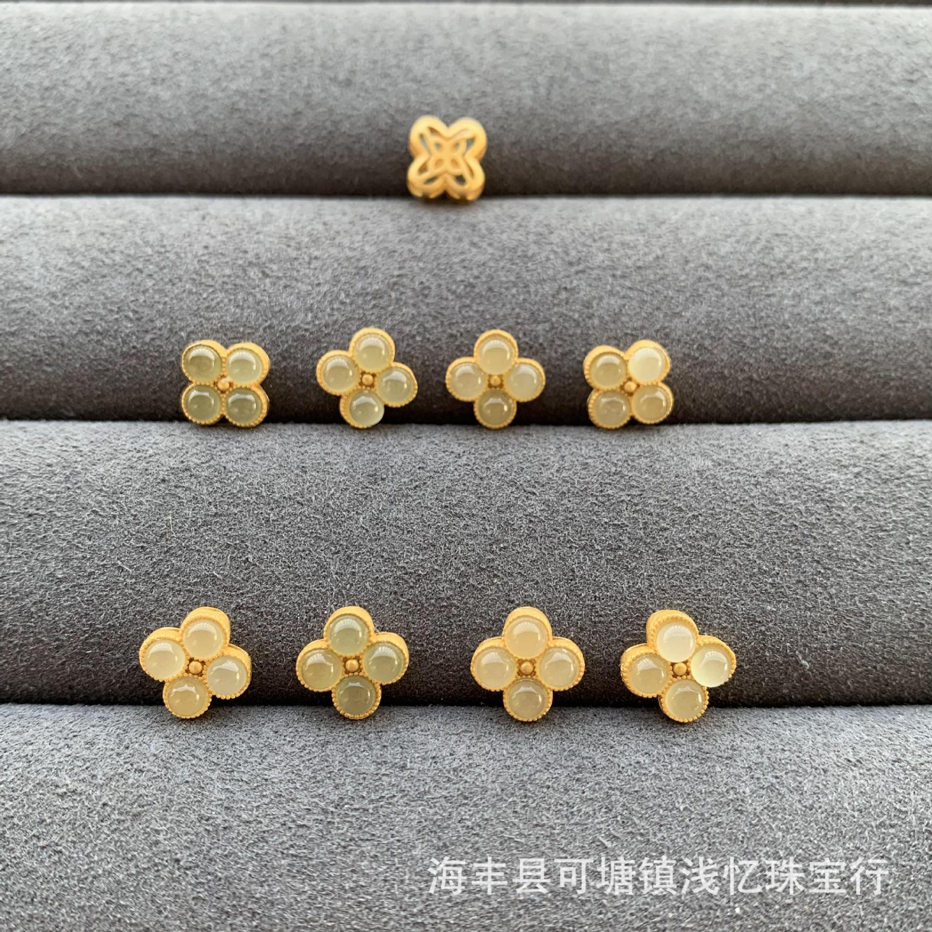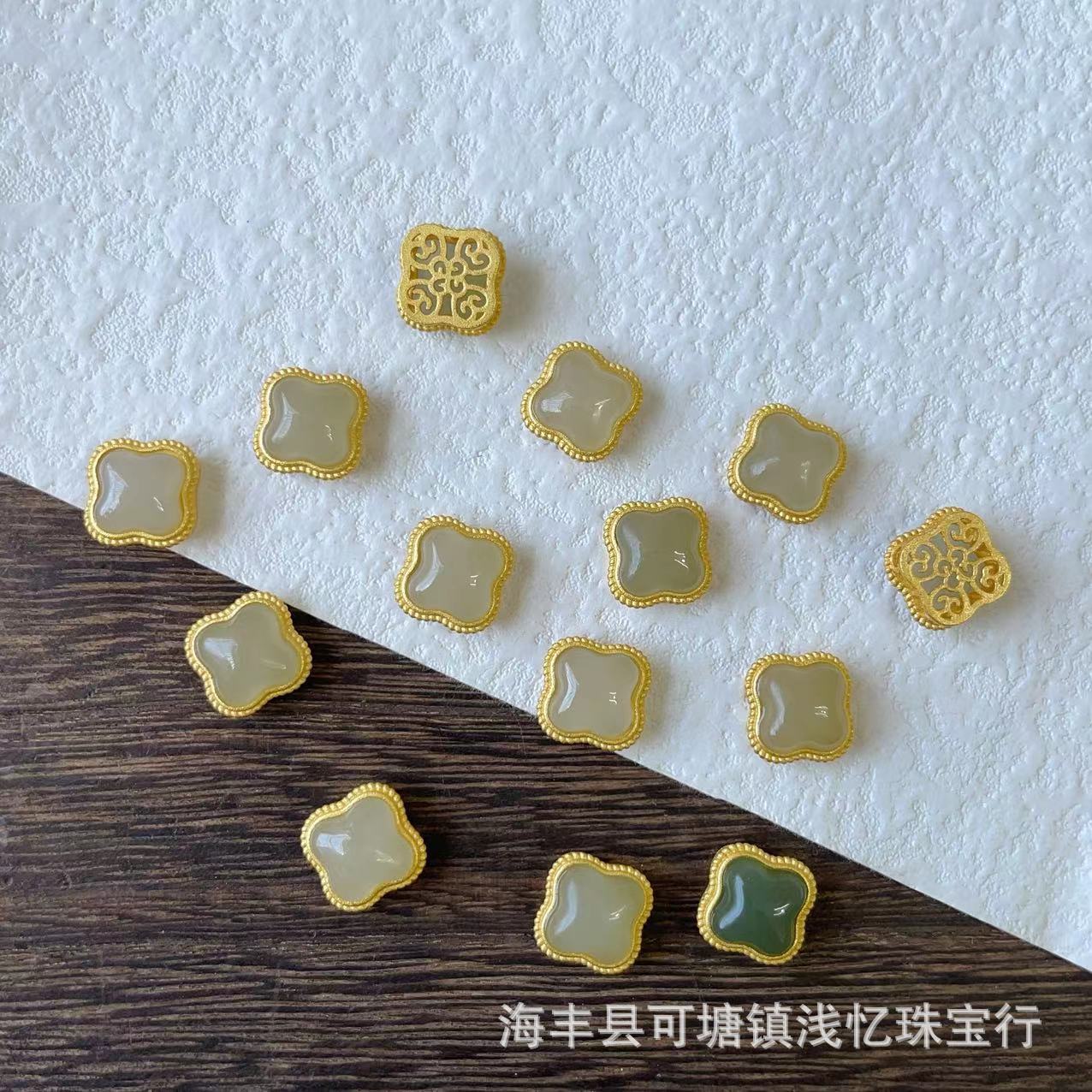 S925シルバーメッキ天然和田玉四つ叶クローバー幸運草diyアクセサリー国风シルバーメッキ古法金アクセサリー