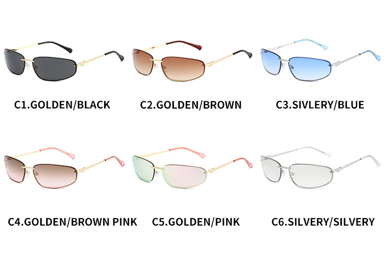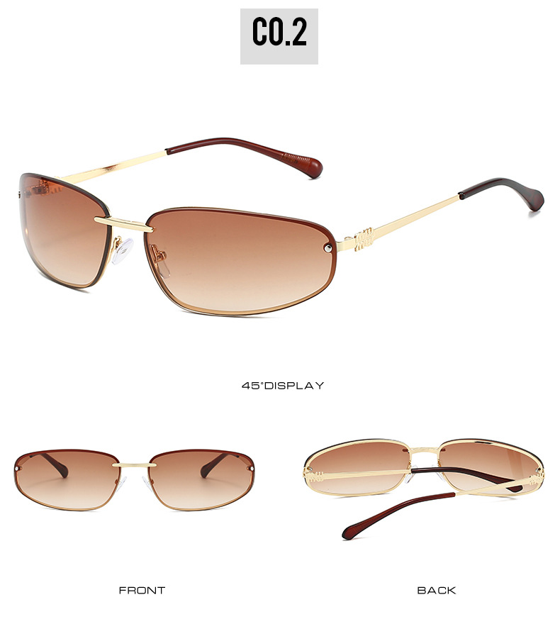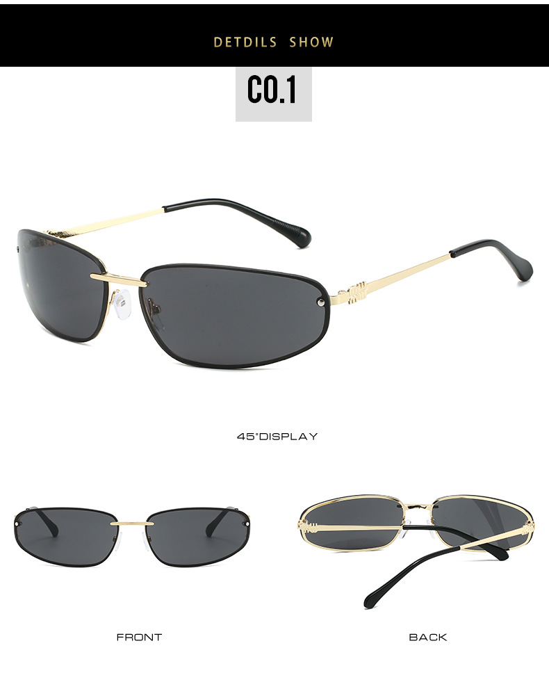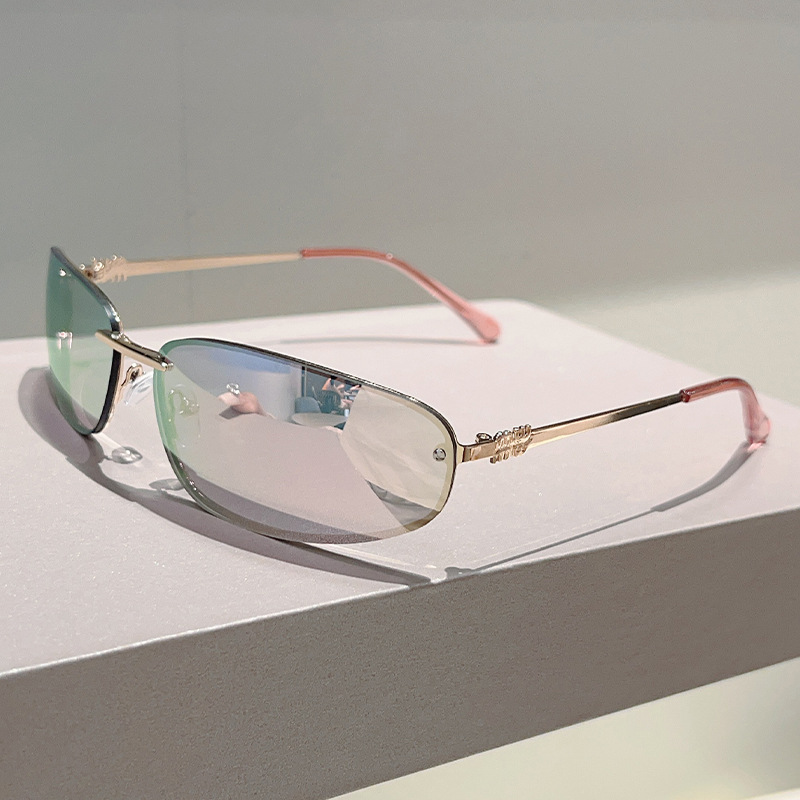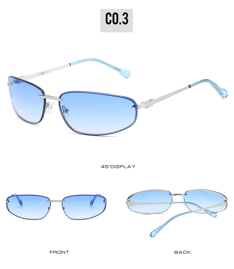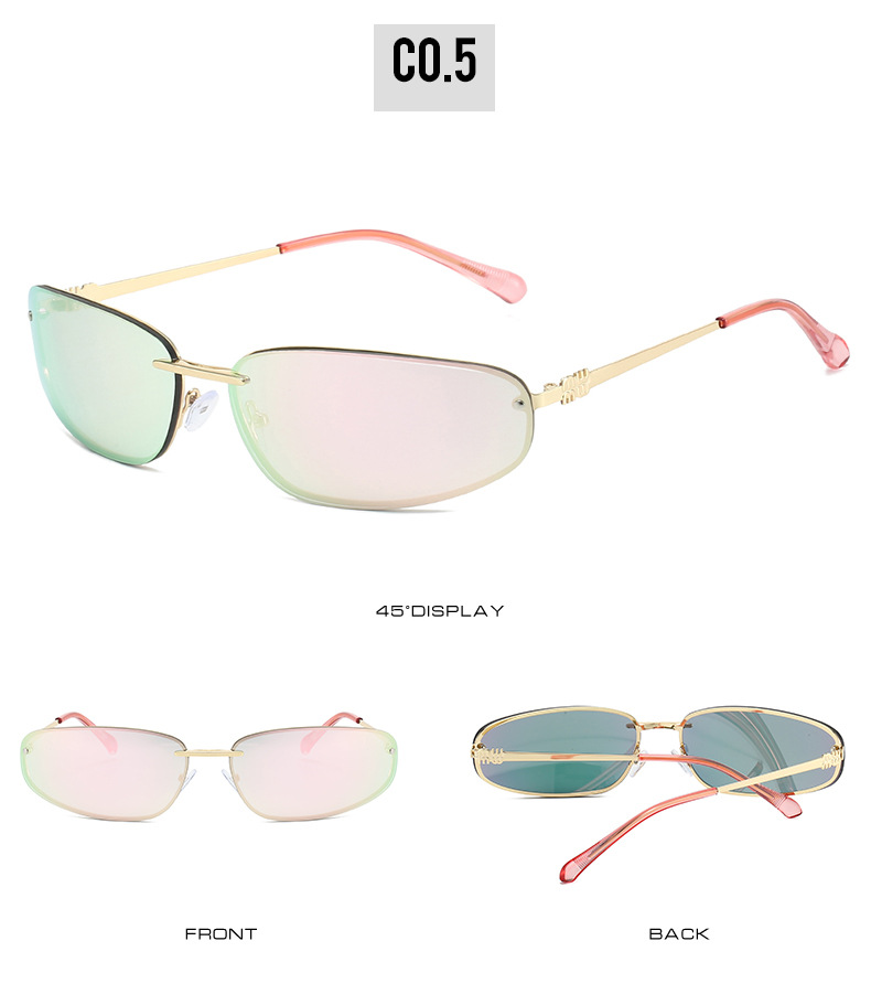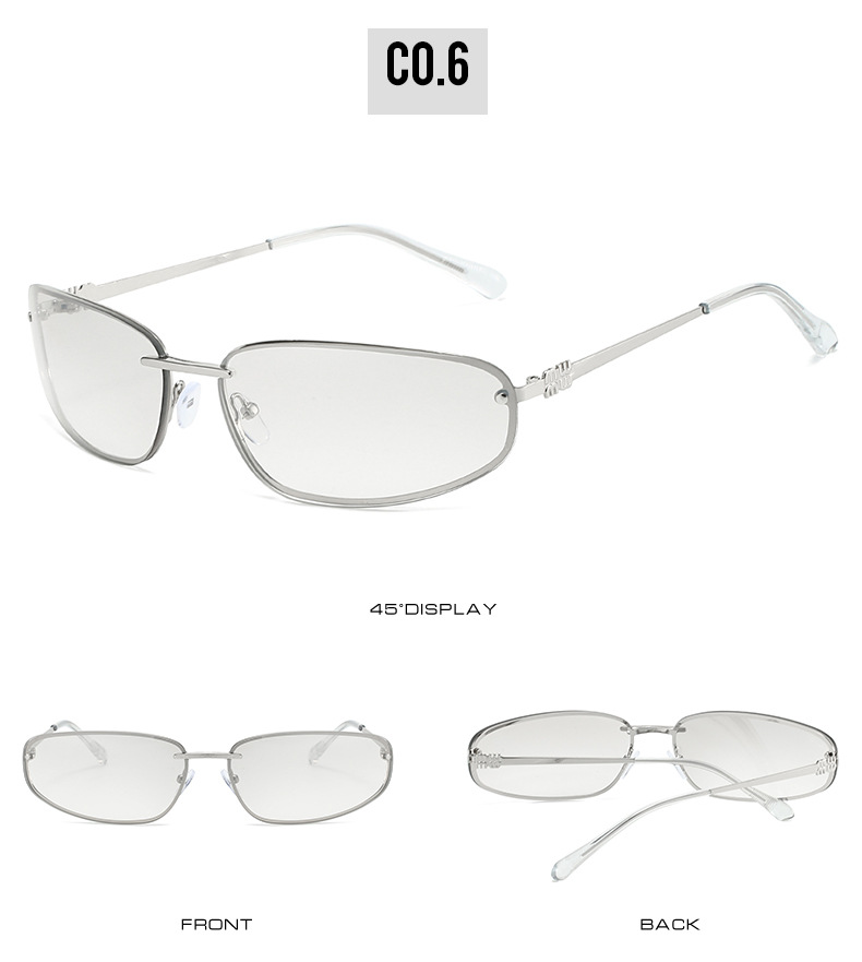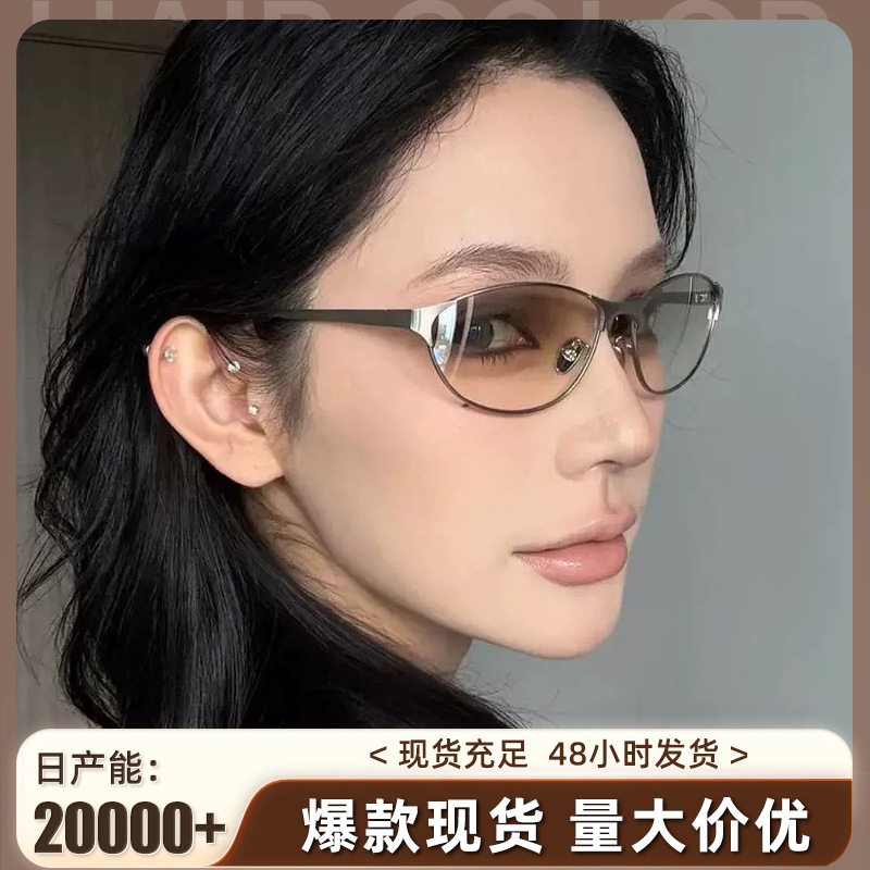 ミュート家金属楕円猫目フレームレス水シルバーY2Kサングラス女性高级感欧米ギャル风サングラス