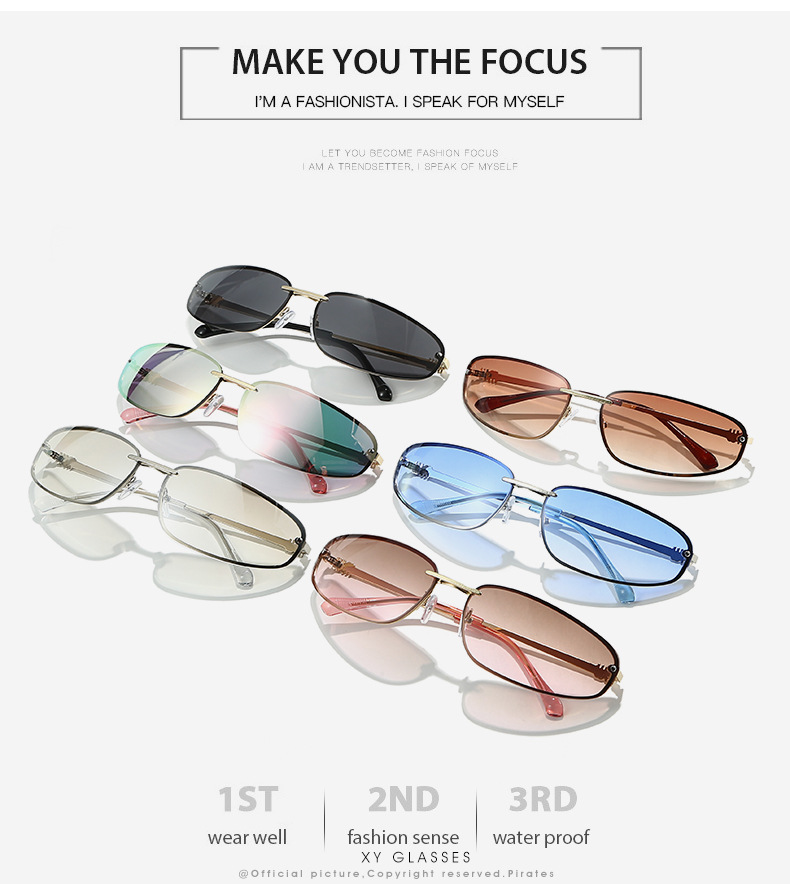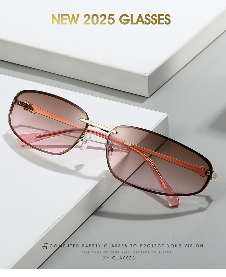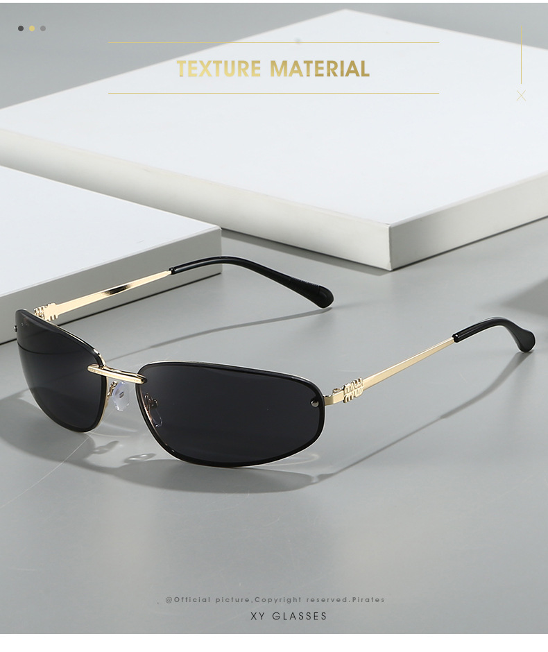 椭圆无框太阳镜Y2K感欧美凹造型2025新款墨镜复古太阳眼镜女