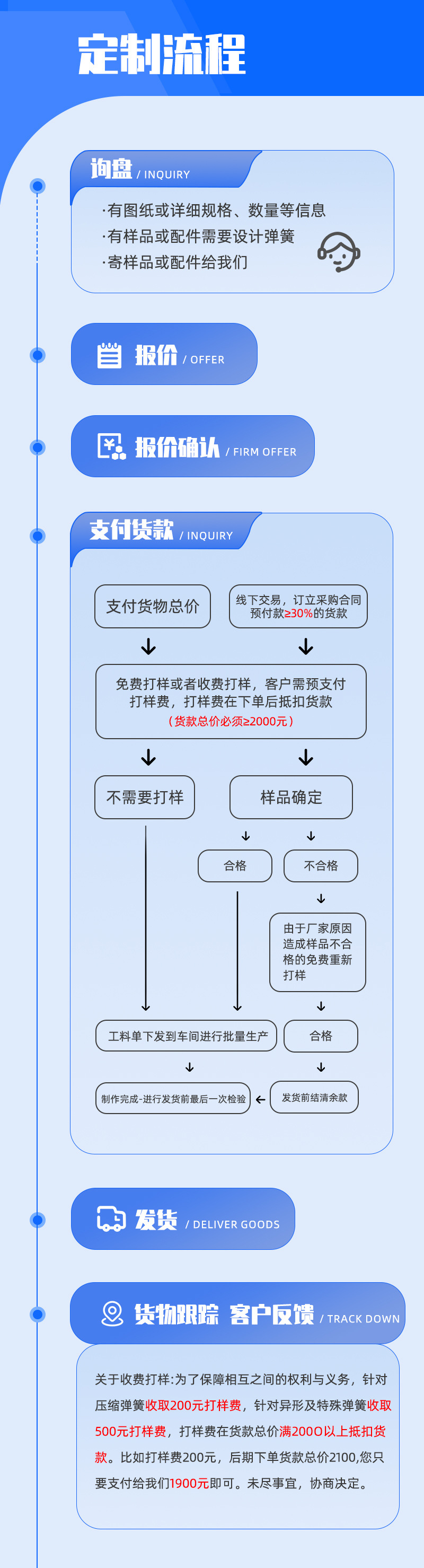 メーカーは、ハードウェアのワンライン成形溶接部品、特殊形状スプリング、ステンレス鋼のスナップスプリングを供給しており、カスタマイズ可能です。
