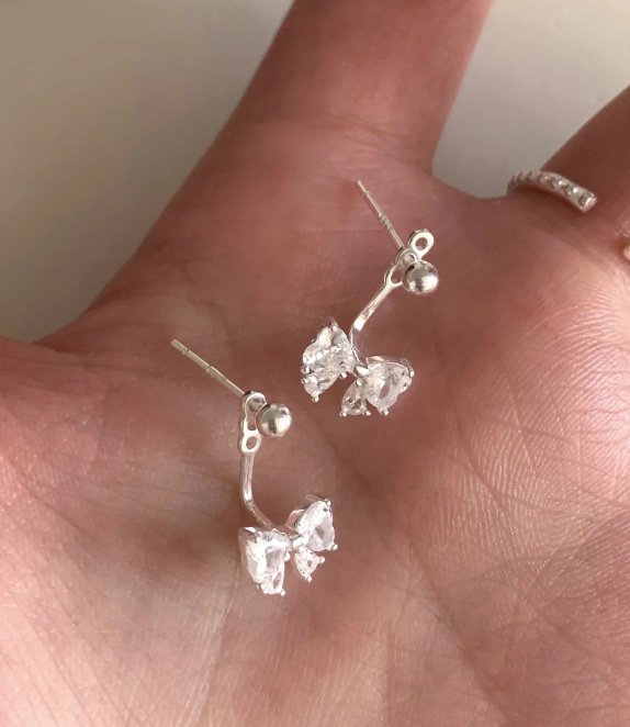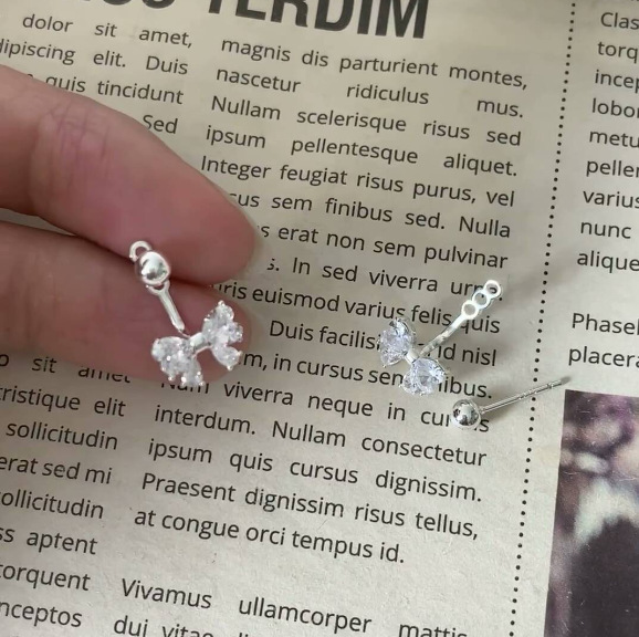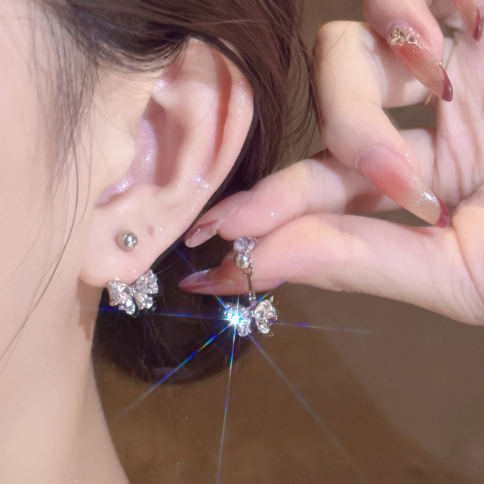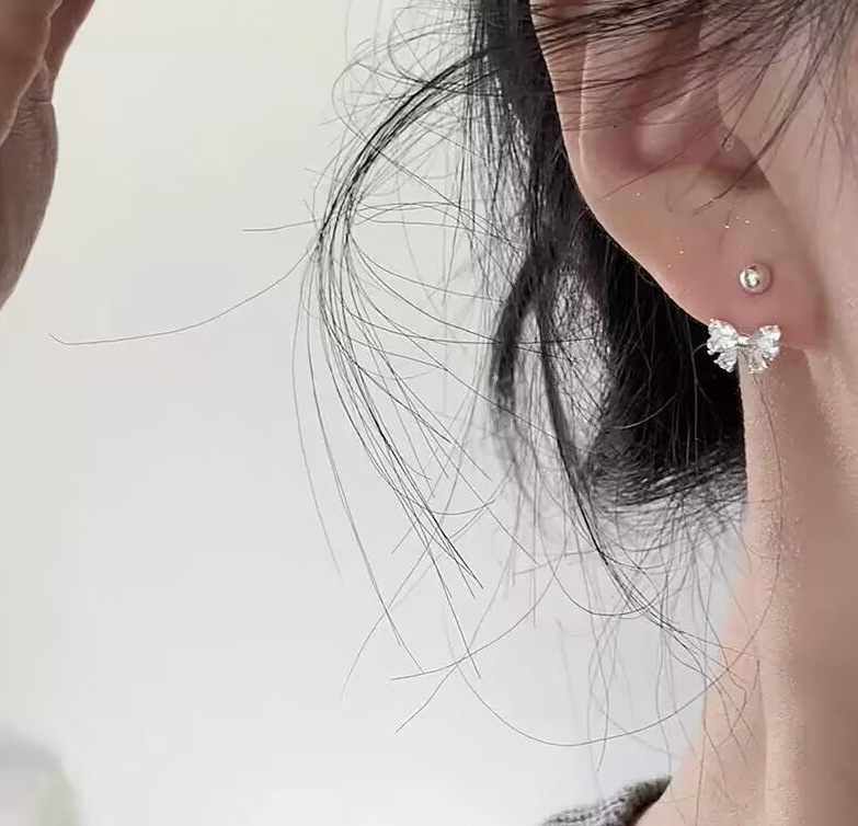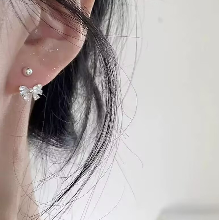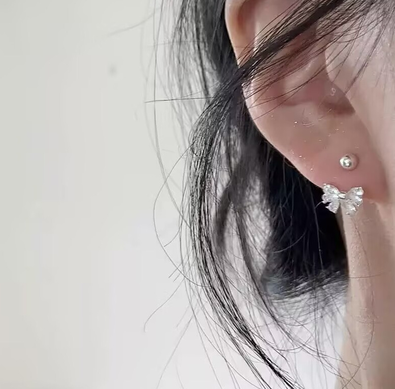 バックタイプのジルコンの蝶結びのイヤリングは女性の精巧でシンプルなデザイン感があります。