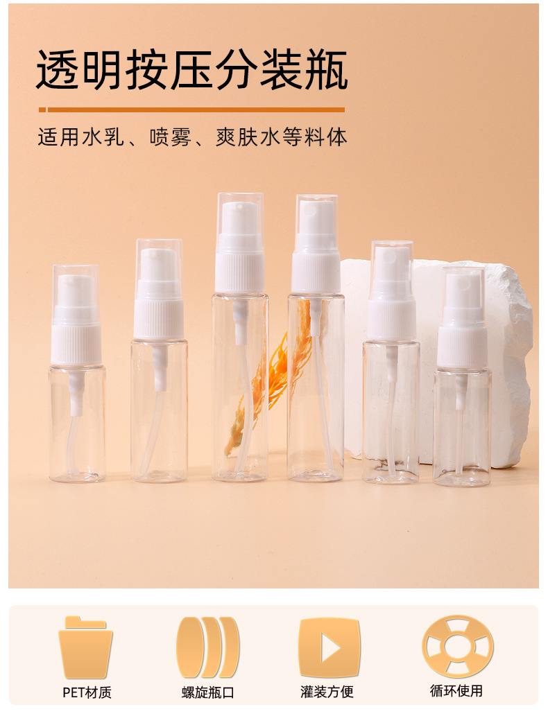 スポット 15ml20ml30ml スプレーボトルポータブルプラスチック小型スプレーボトルプッシュ式エッセンスローション詰め替えボトル