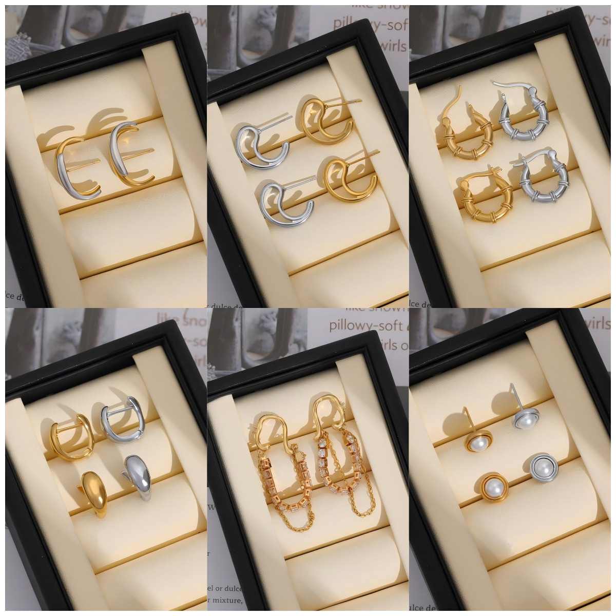 欧米の国境を越えた新しいモザイクドリルの女性イヤリングのアイデアフランスのレトロな金色の耳輪セット