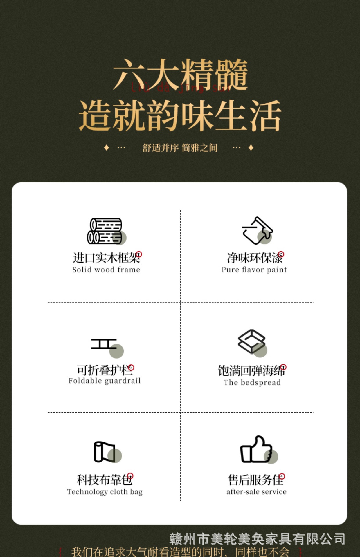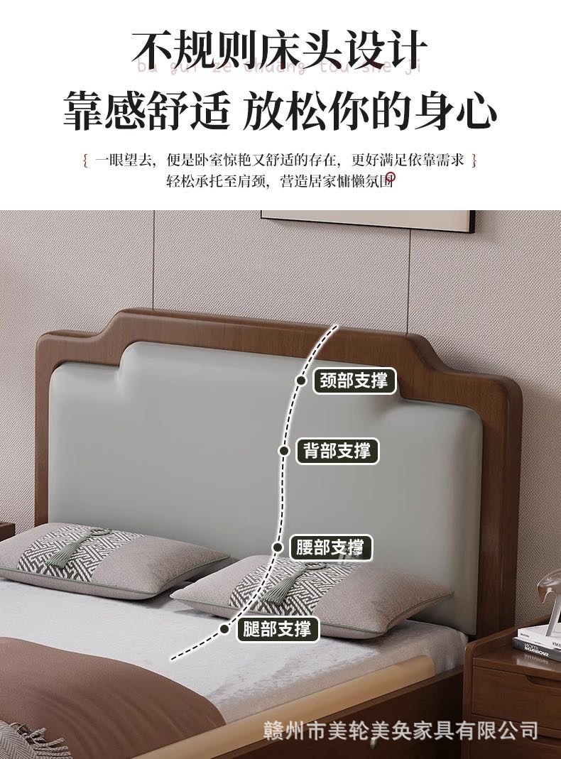 北欧アパート無垢材ベッド 1.8m ナイトライト付きモダンなミニマリストダブルベッド 1.5m ホテルホームステイホテルソフトバッグベッド